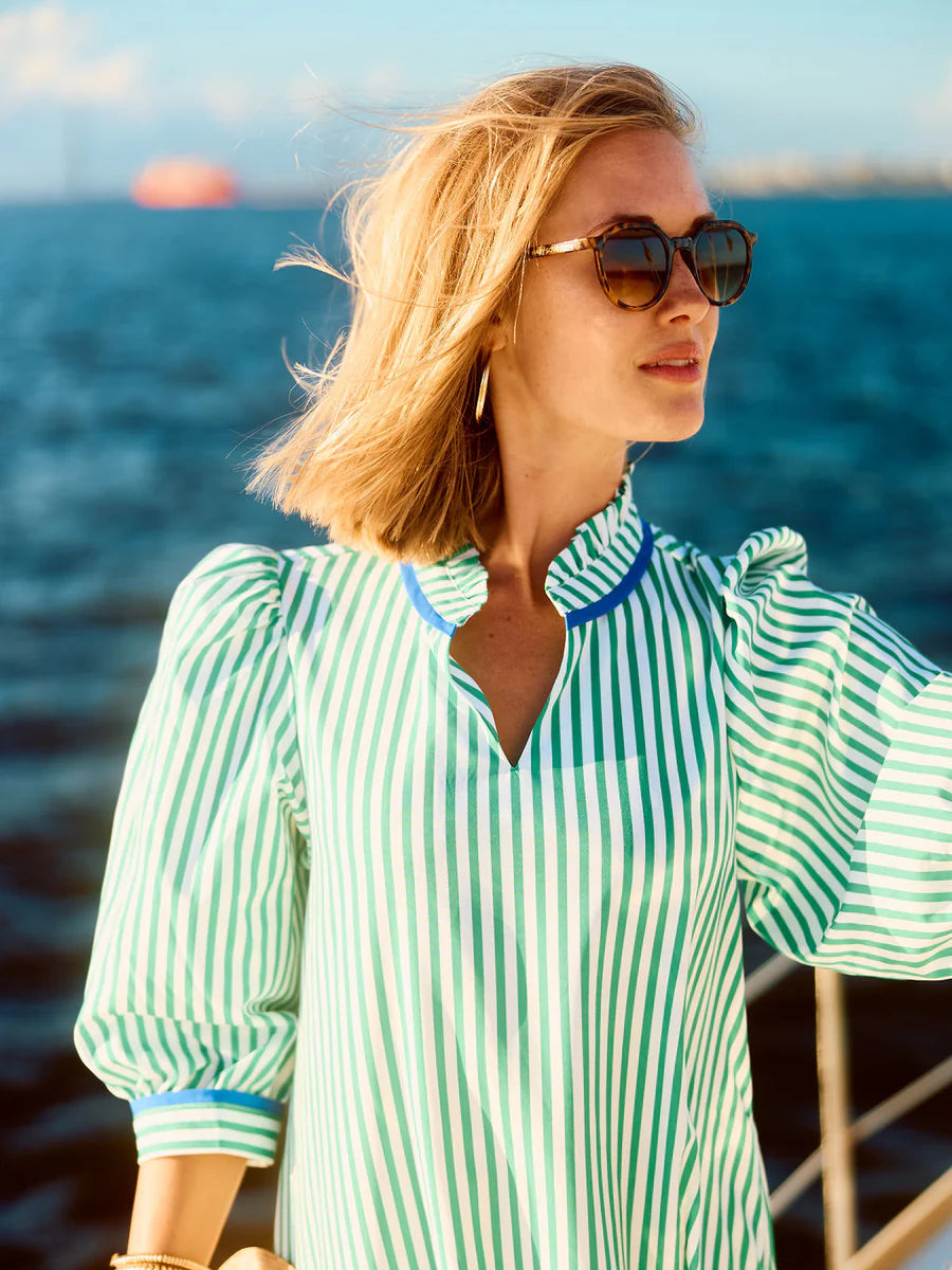 Effortlessly chic and endlessly versatile, the Naomi Dress is a perfect blend of sophistication and charm. Featuring a romantic ruffle V-neckline and 3/4 sleeves with elegant puff shoulders, this dress brings timeless femininity to your wardrobe. The contrast trim details add a modern, polished touch, while the functional pockets combine style with everyday practicality.