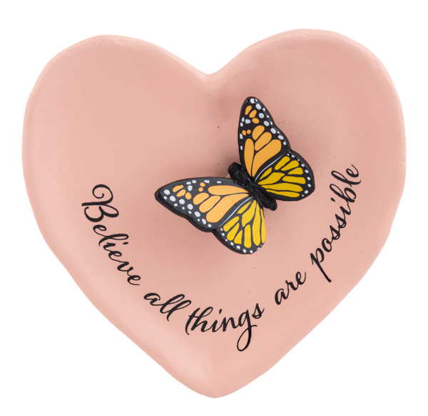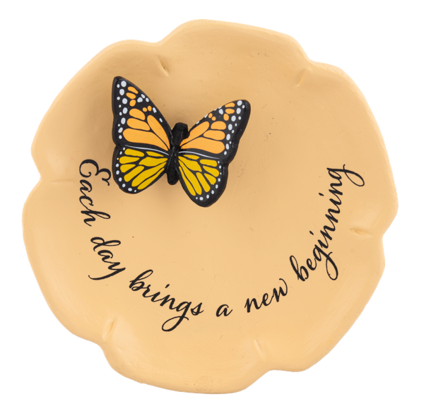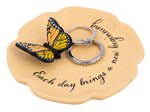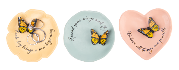 The Butterfly Trinket Dish measures a compact 3" by 3", making it an ideal choice for organizing small items on your bathroom counter or bedside table. Its practical size fits neatly in limited spaces while providing a dedicated spot for jewelry, keys, or other small essentials, helping to keep your area tidy and accessible.
