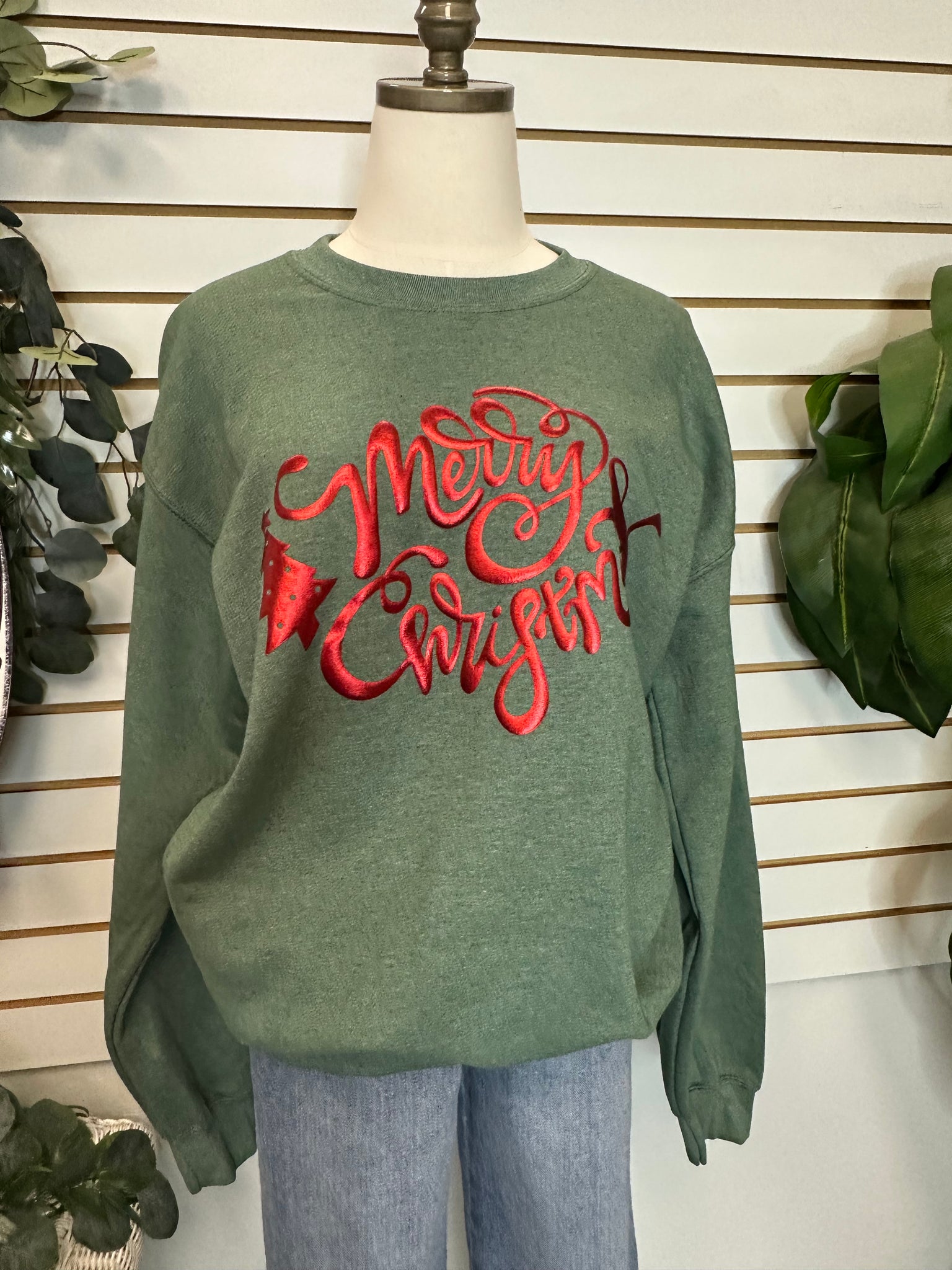Elevate your holiday wardrobe with this vintage heathered dark green sweatshirt featuring a striking metallic puff graphic. Designed for festive comfort, it combines a timeless vintage look with eye-catching holiday sparkle. The soft fabric ensures warmth and cozy wear, making it ideal for seasonal gatherings or casual days. Durable and stylish, this sweatshirt adds a sophisticated touch to your Christmas celebrations.