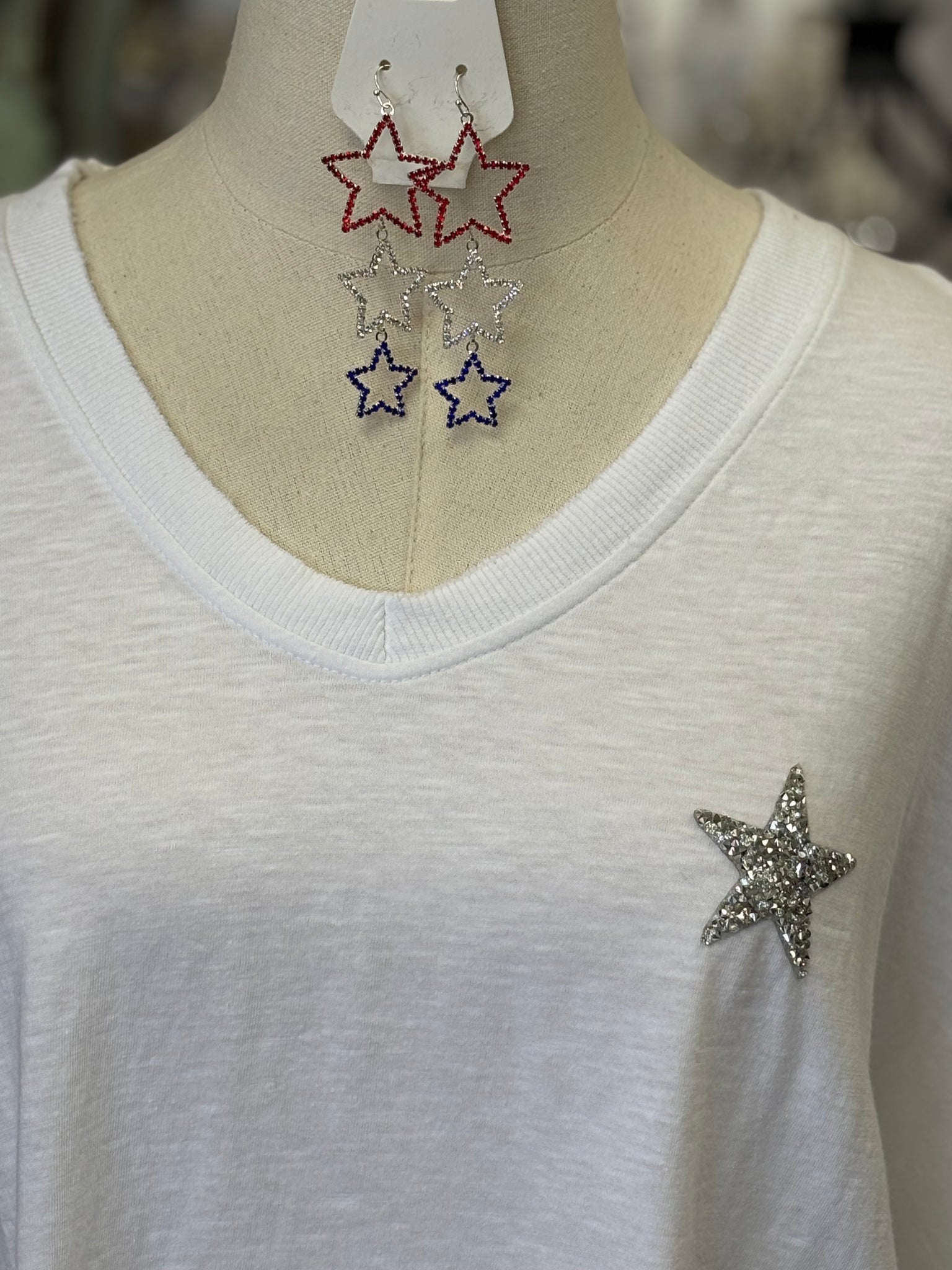 The Frosted Tee Shirt is the perfect addition to any wardrobe, with its oversized and comfortable fit, long sleeves for added warmth, and stylish silver star accent. The low neck line adds a touch of sophistication to this must-have tee.