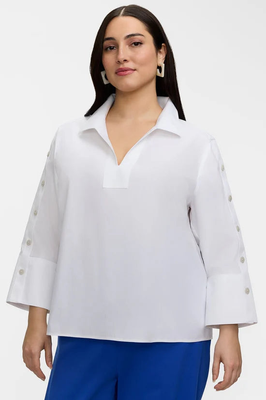 •Meet Lainey: a modern take on menswear polish. Crafted from pure pinpoint Oxford, it feels substantial yet drapes effortlessly. A box pleat lends movement, while a thick placket and functional buttons along each sleeve add a tailored twist that’s anything but ordinary.