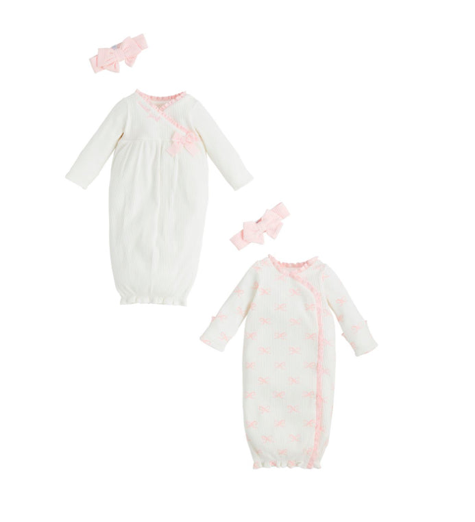 This cotton rib sleep gown is perfect for your baby's delicate skin. It features ruffle detailing for a sweet touch and built-in scratch protectors on the hand mitts. The included bow headband adds a charming finishing touch. Give your little one a cozy and stylish night's sleep.