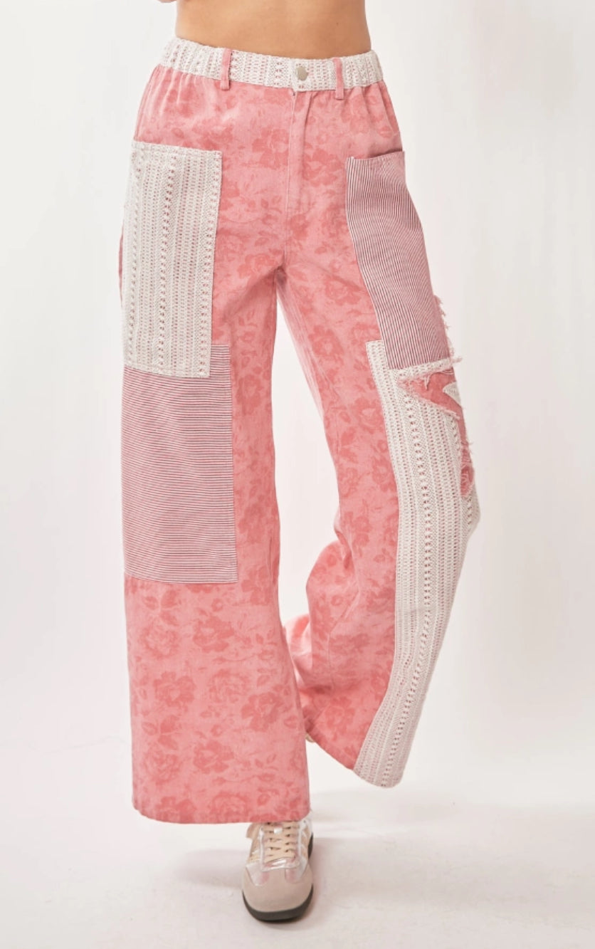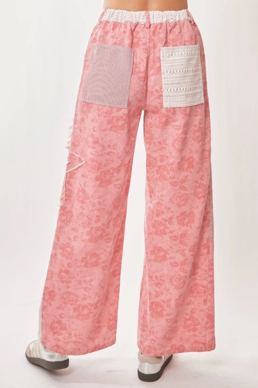 Transform your wardrobe with the Add to My Collection Pant, featuring a unique floral and stripe denim mixed design. Stand out with star patch details and a washed finish. Elevate your style with confidence.