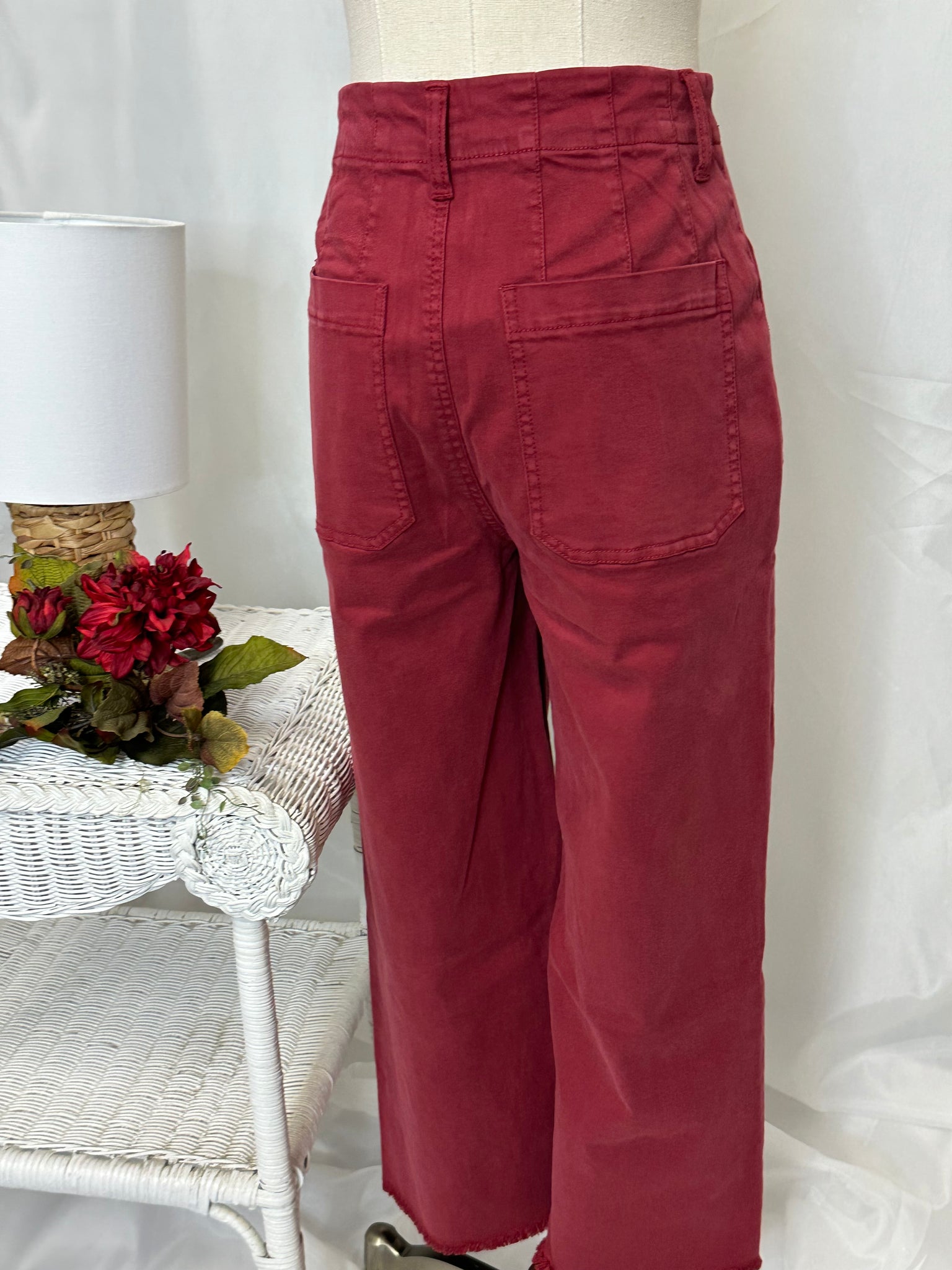 The Bella High Rise Crop offers a tailored fit with belt loops for easy accessorizing. Featuring a button front and zipper closure, these pants combine practicality with style. The back pockets add both a classic look and convenient storage, making them a versatile addition to your wardrobe. Crafted to sit high on the waist, they provide flattering support and a modern cropped length.
