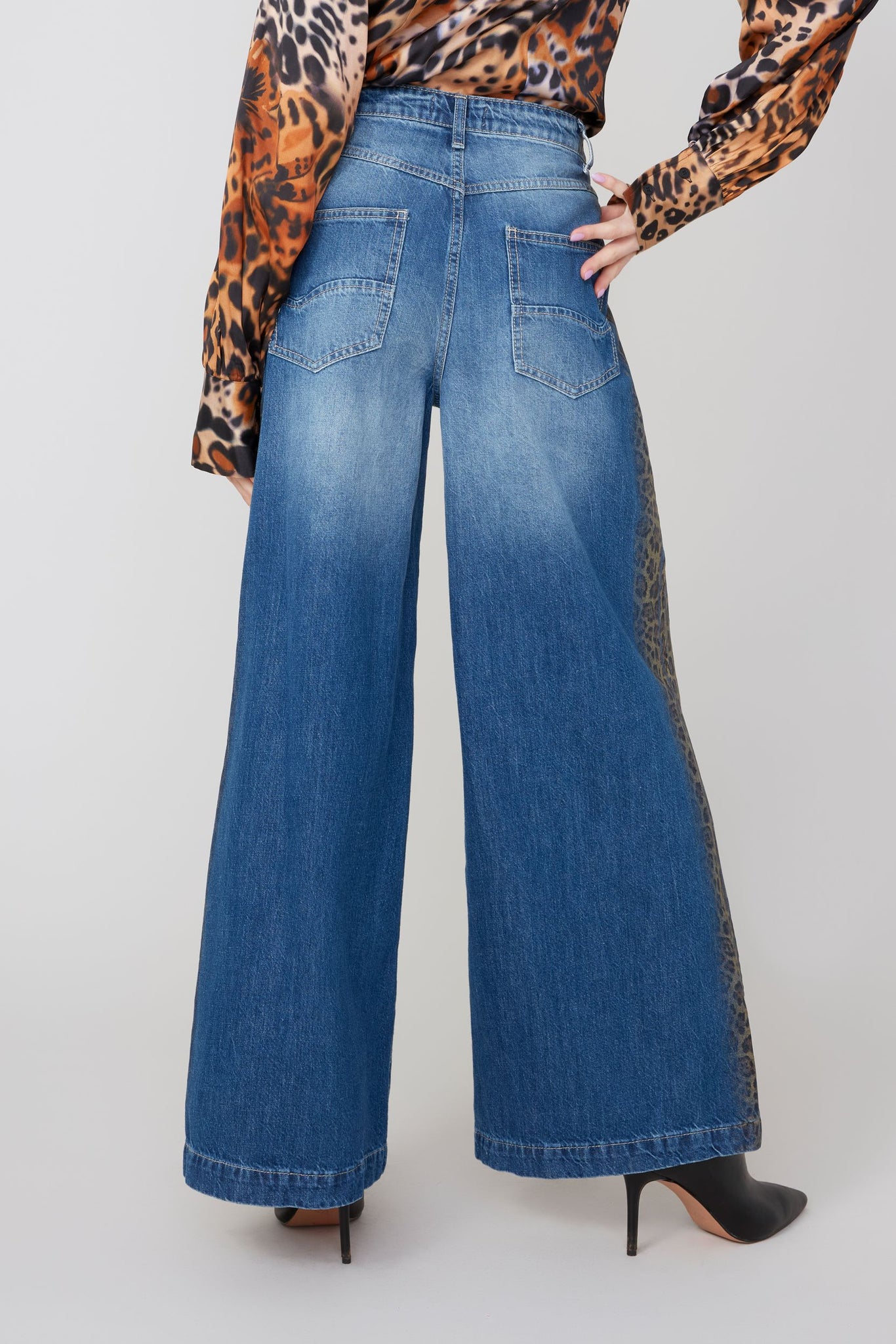 The Wild Side Wide Leg Pant features a bold cheetah print contrast along the outer seam, adding a striking detail to its relaxed silhouette. Designed with practicality in mind, it includes back and hip pockets, belt loops for customizable fit, and a secure button-front zipper closure. This pant blends comfort with a touch of wild sophistication, perfect for those seeking statement style with functional elements. Pari back with matching top "Wild Side Blouse" for a complete look.