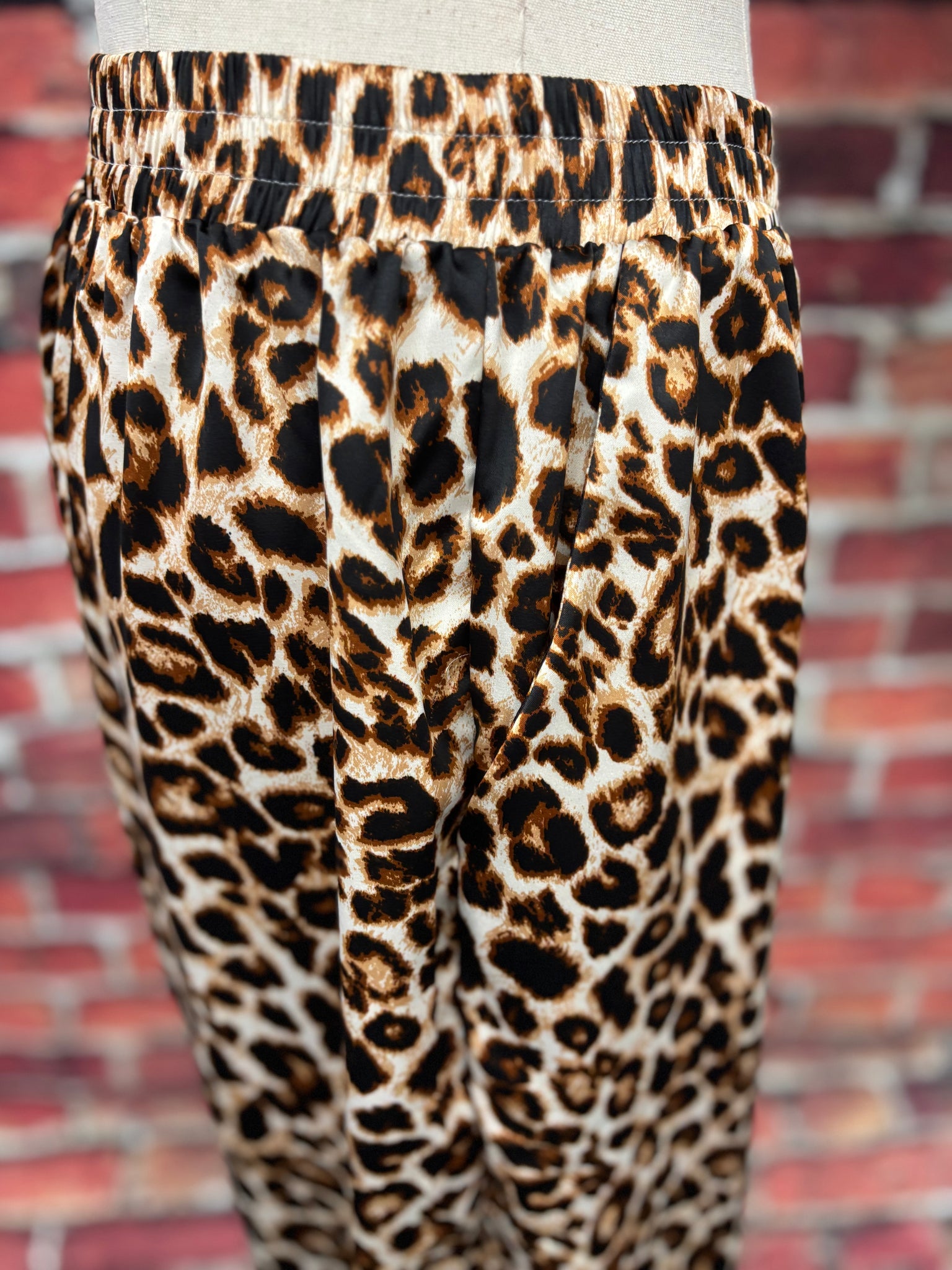 Step into effortless style with these bold leopard print pull-on pants. Designed with a comfortable elastic waistband and adjustable tie front, these pants offer the perfect blend of relaxed comfort and statement fashion. Leopard print has long been a popular fashion pattern inspired by animal markings, making it a timeless way to add personality to any outfit.Ā