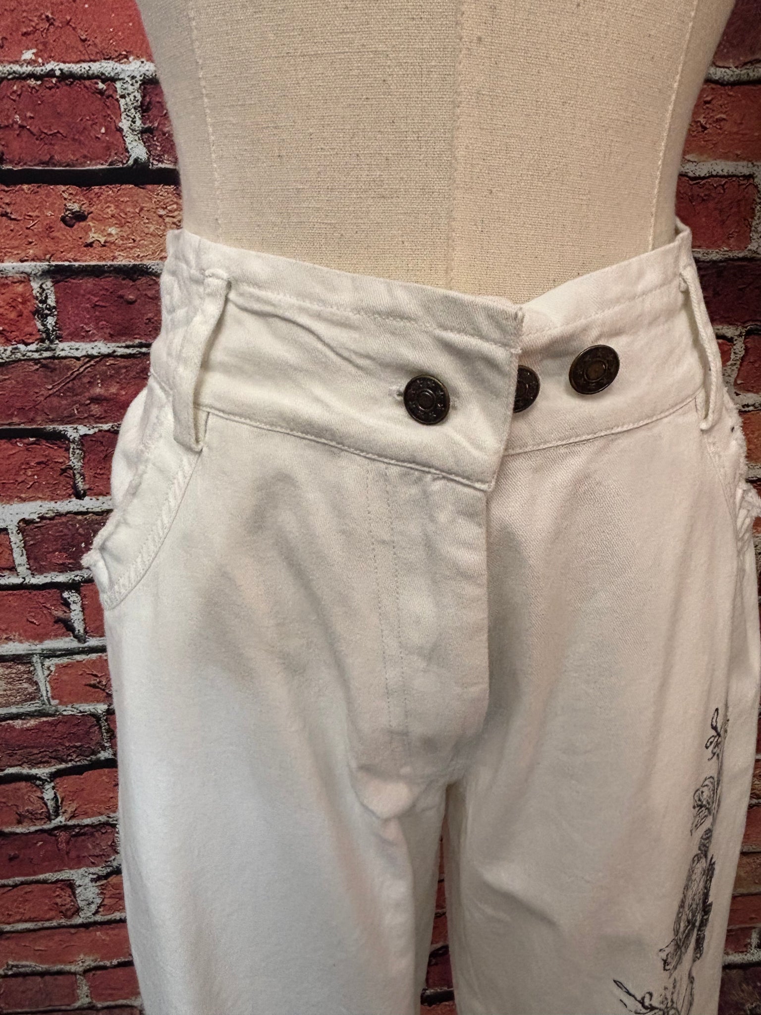 Effortlessly relaxed with an artistic touch — these 100% cotton pants bring the perfect boho vibe to your everyday wardrobe. Featuring a soft gray floral print that runs along the leg, they feel unique, elevated, and easy to style.