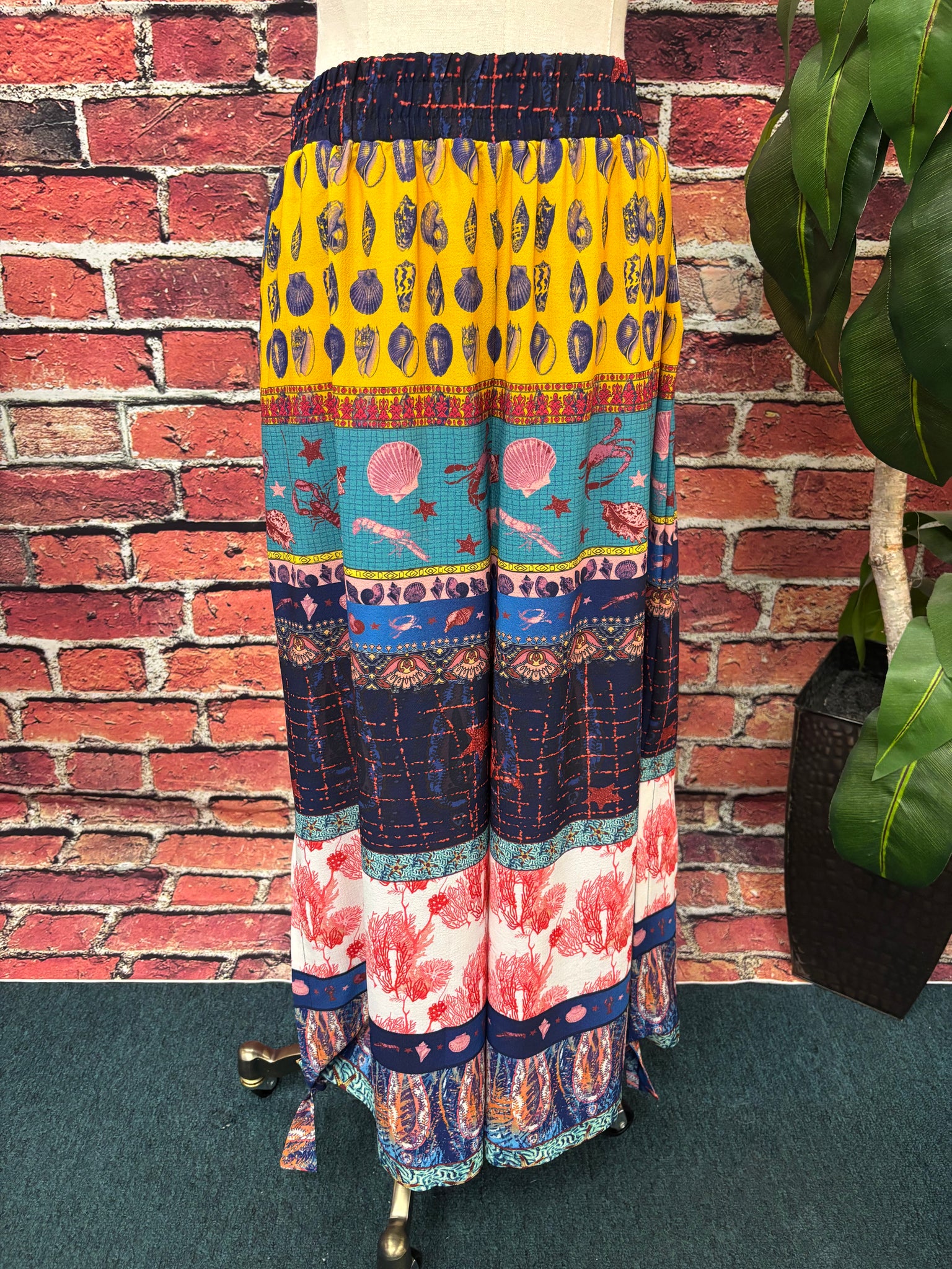 Make a statement wherever you go in the Seaside Patchwork Palazzo Pants! Featuring a vibrant mix of coastal-inspired prints and colors, these flowy pants bring all the fun, carefree vibes of a beach getaway.