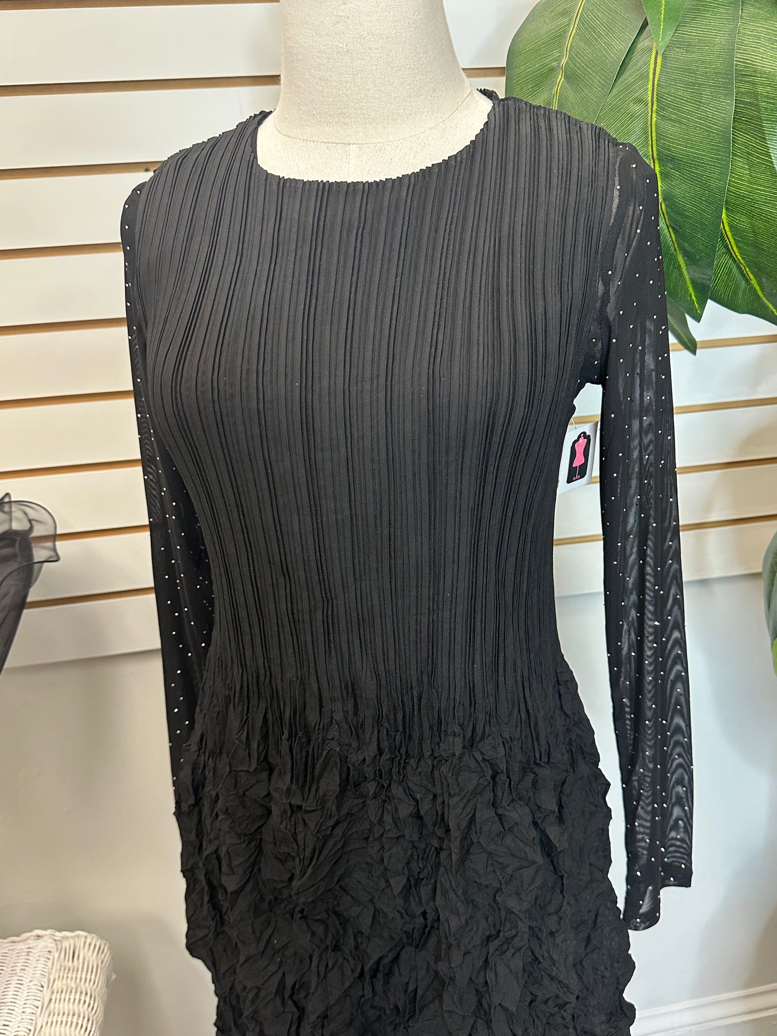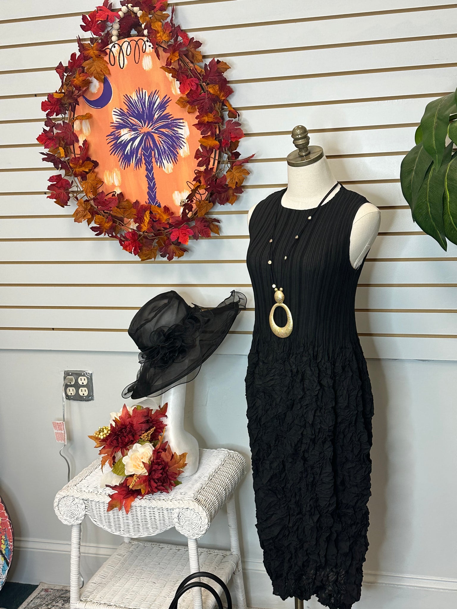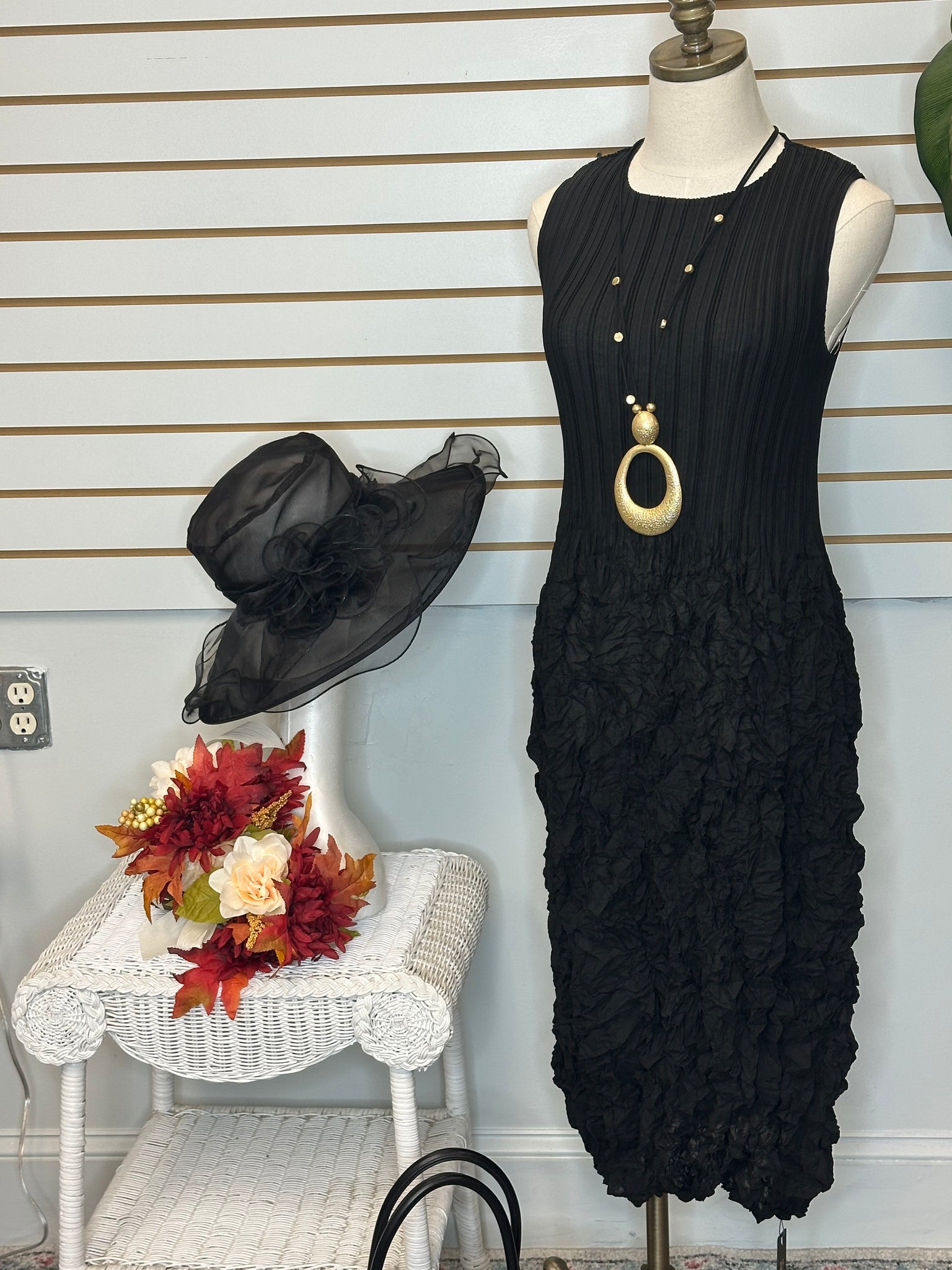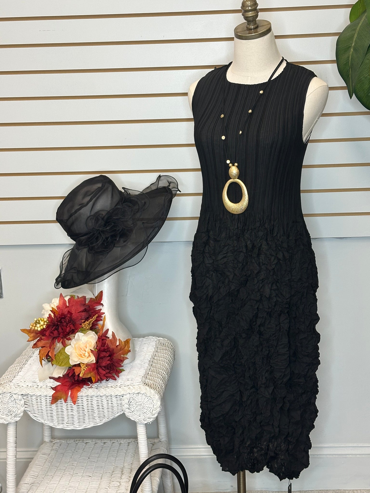 This "I Must Have Dress" features a pleated stretch top paired with a textured crinkle bottom for a unique, flattering silhouette. The tank-style design falls to mid-calf, offering both comfort and elegance. Crafted from 92% polyester and 8% spandex, it provides gentle stretch and durability. Designed as one size fits most, it adapts effortlessly to your shape, making it ideal for occasions from weddings to date nights. This dress looks great for added warmth or just an added touch to put a lace top underneath.