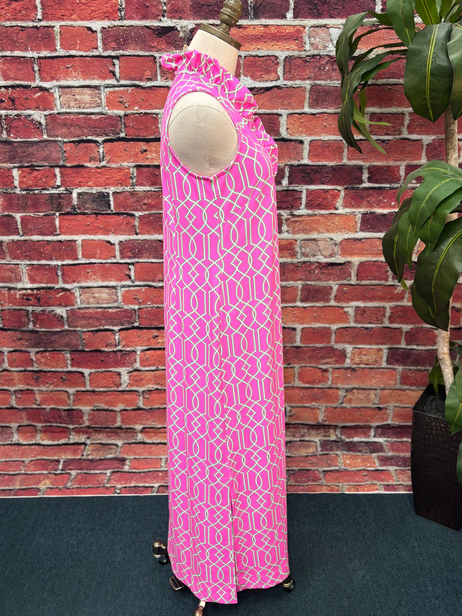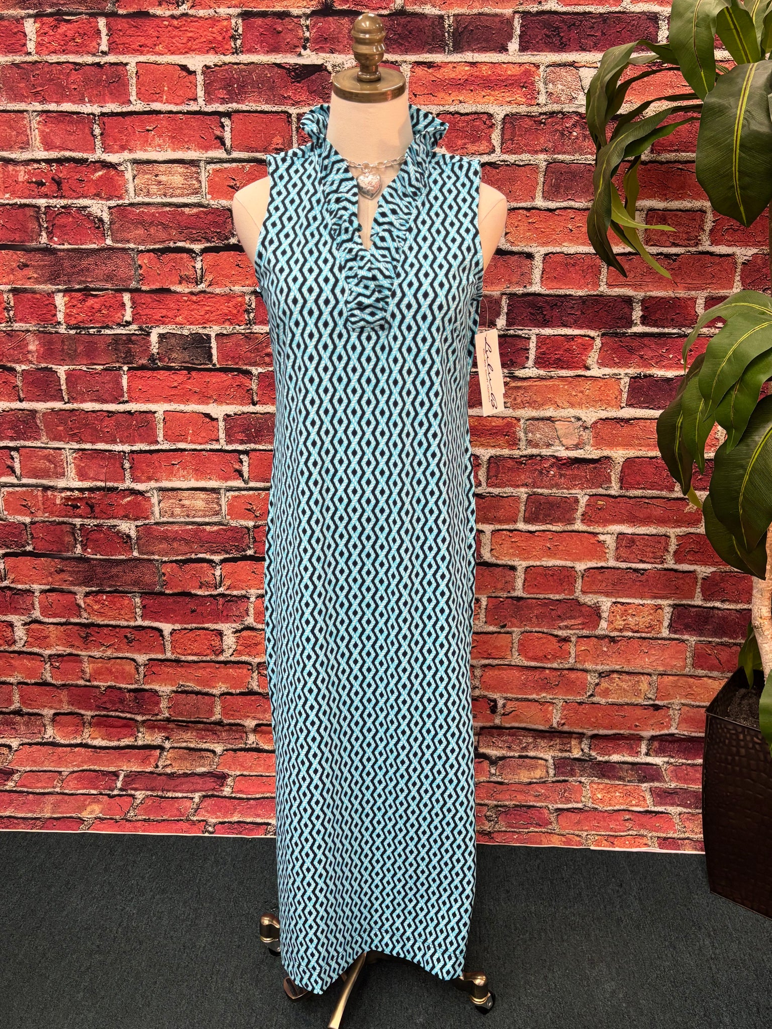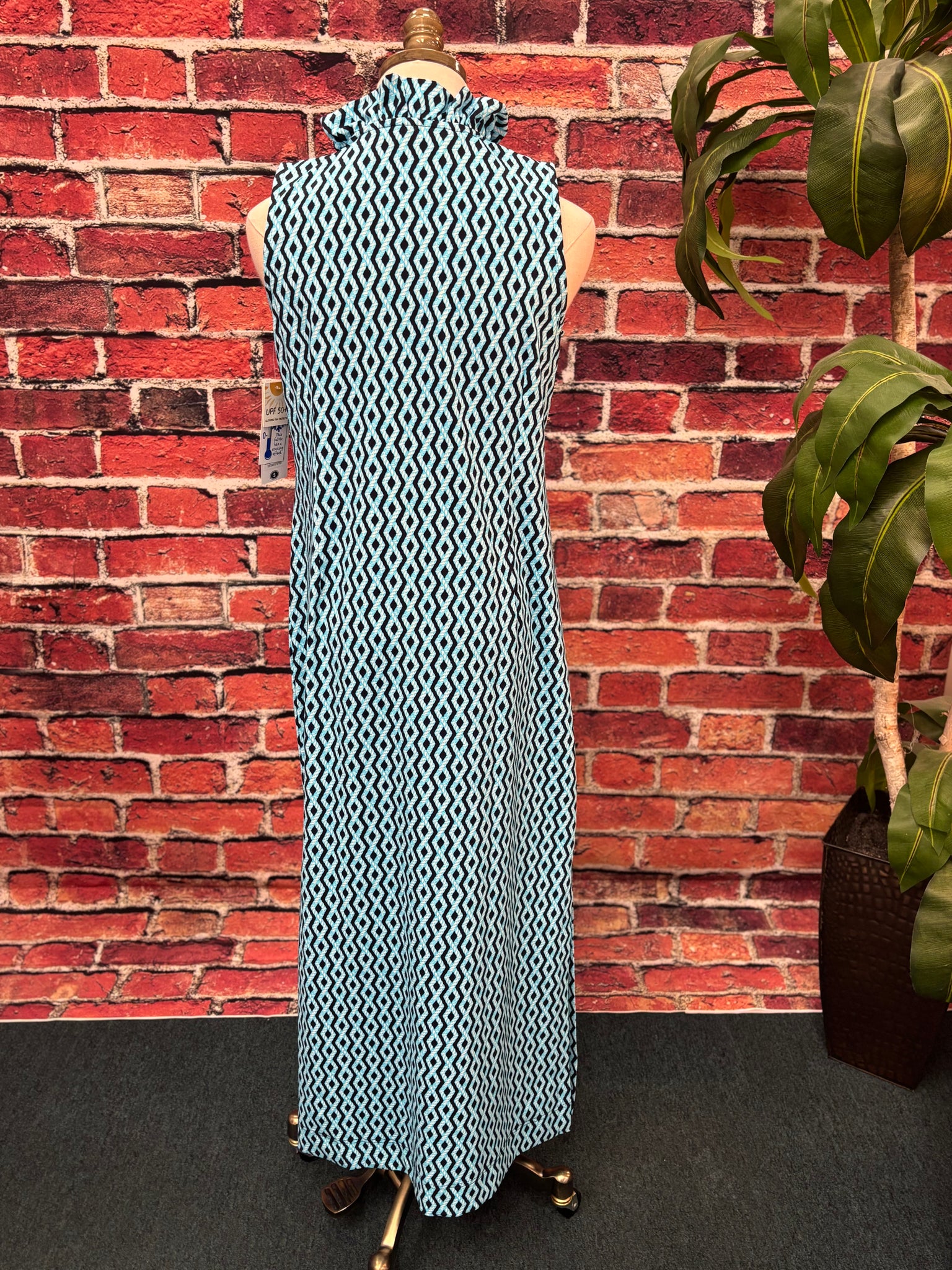 Embrace effortless elegance with the Sunny Days Maxi Dress, designed for those who appreciate both style and substance. This sleeveless wonder features a captivating V ruffle neckline that adds feminine charm while the semi-fitted silhouette flatters your frame. Crafted from a premium 92% nylon and 8% spandex blend, this dress offers exceptional comfort and durability. The integrated UPF50+ sun protection shields your skin during outdoor adventures, making it an intelligent choice for warm-weather dressing. Machine wash cold for easy care. UPF 50 with a cooling effect fabric.