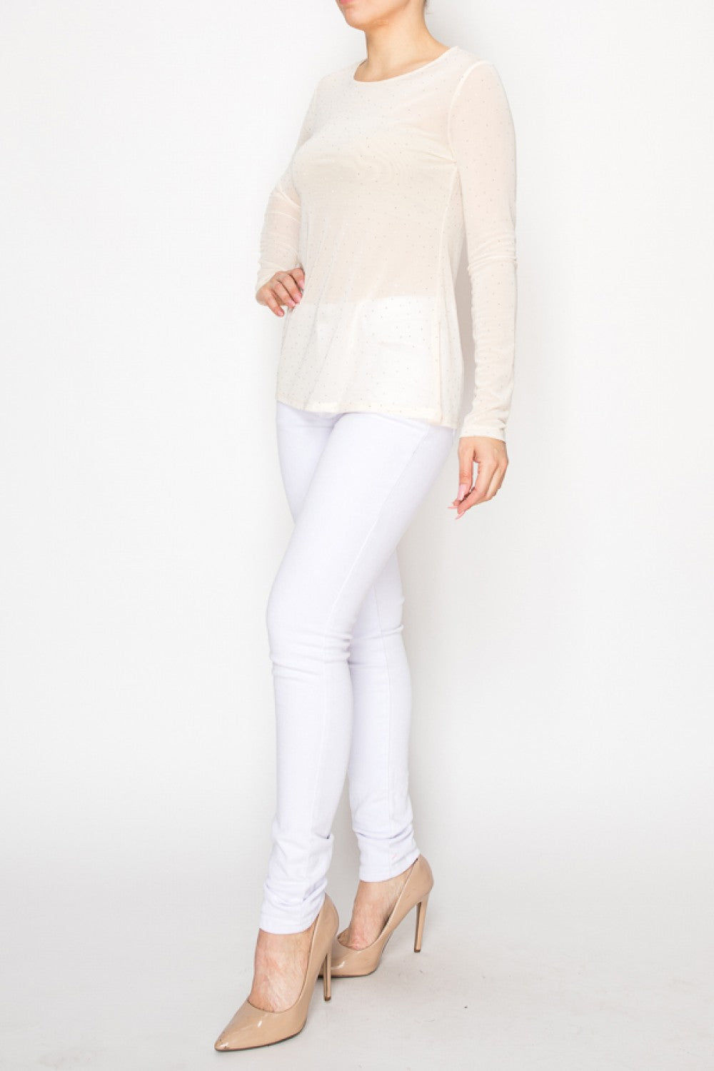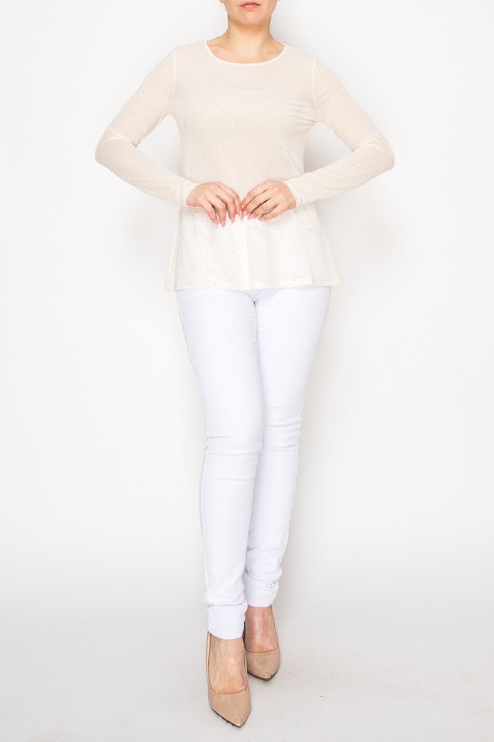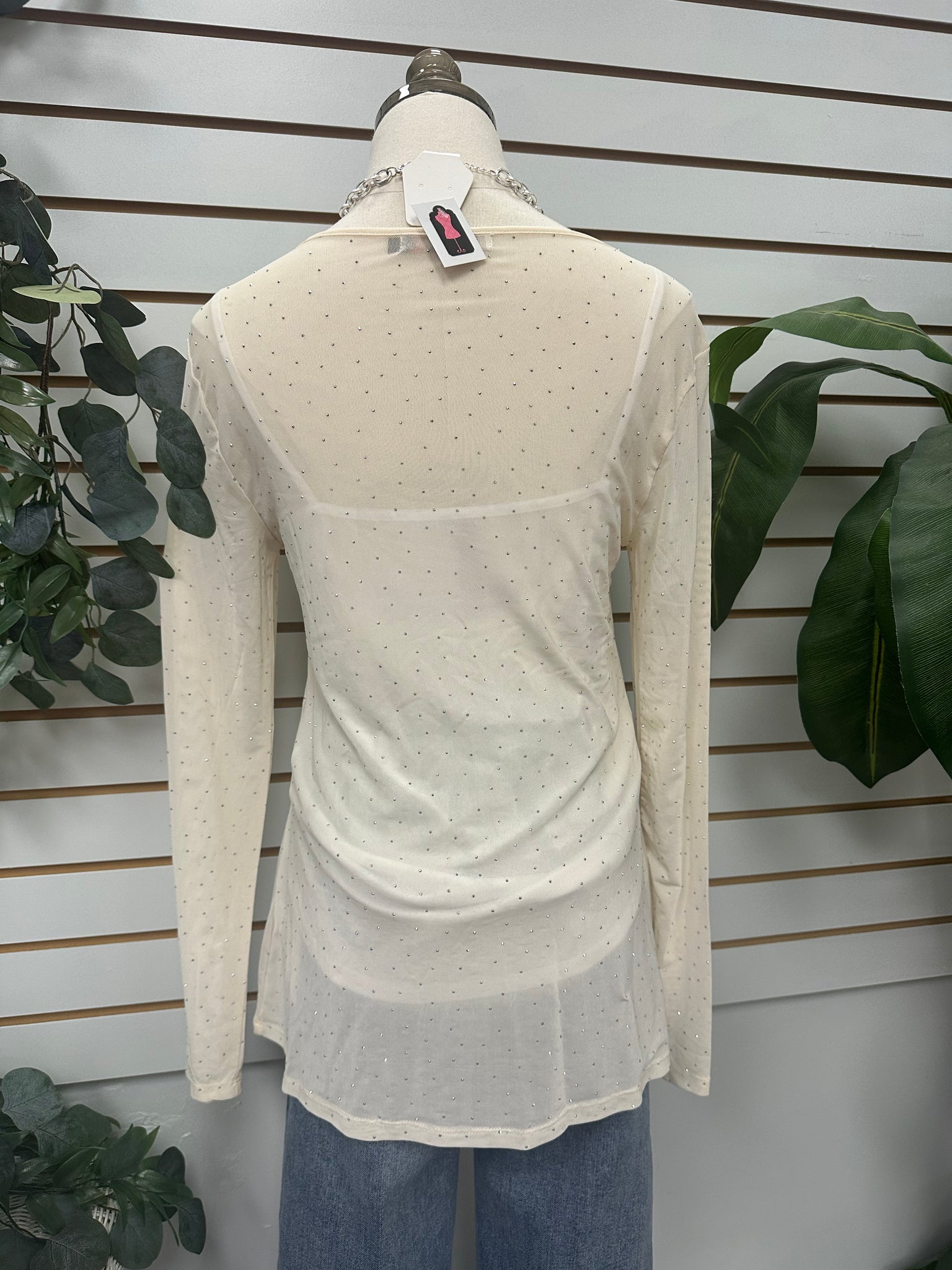 Elevate your wardrobe with this expertly crafted long sleeve mesh top, featuring delicate sparkly details that add a subtle shimmer to your look. The breathable mesh fabric ensures comfort and flexibility, while the sparkling accents provide a refined touch perfect for both day and evening wear. Designed for those who appreciate sophisticated style with a hint of glamour, this top pairs effortlessly with a variety of outfits to enhance your fashion statement.