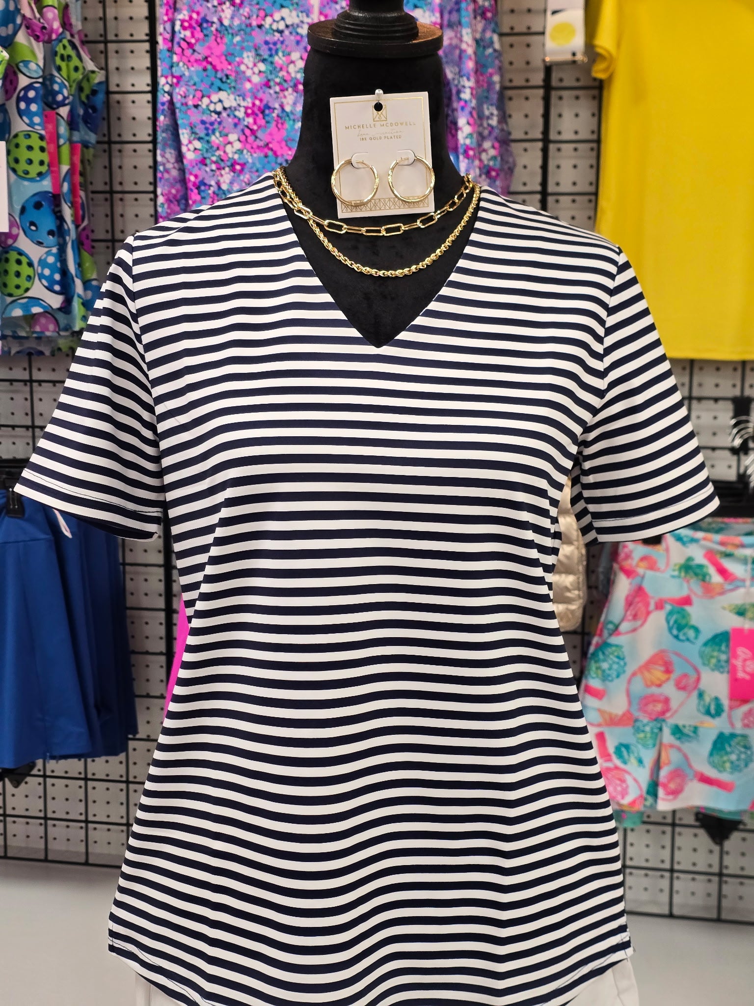 The Start Here Top features a flattering V-neck and short sleeves, offering a versatile and comfortable fit. Crafted for ease of movement and style, this top is ideal for layering or wearing on its own, making it a foundational piece for any wardrobe. Its design balances simplicity with elegance, suitable for both casual and professional settings.