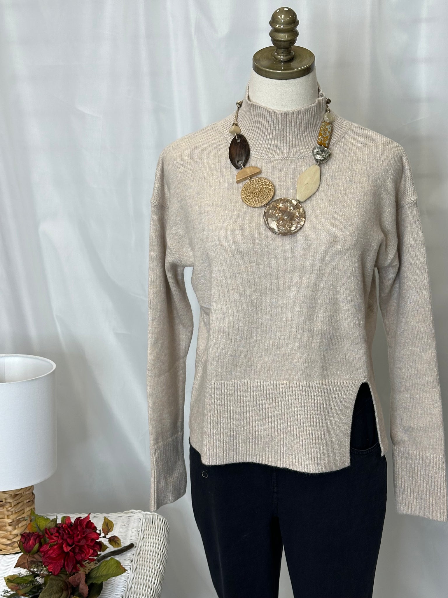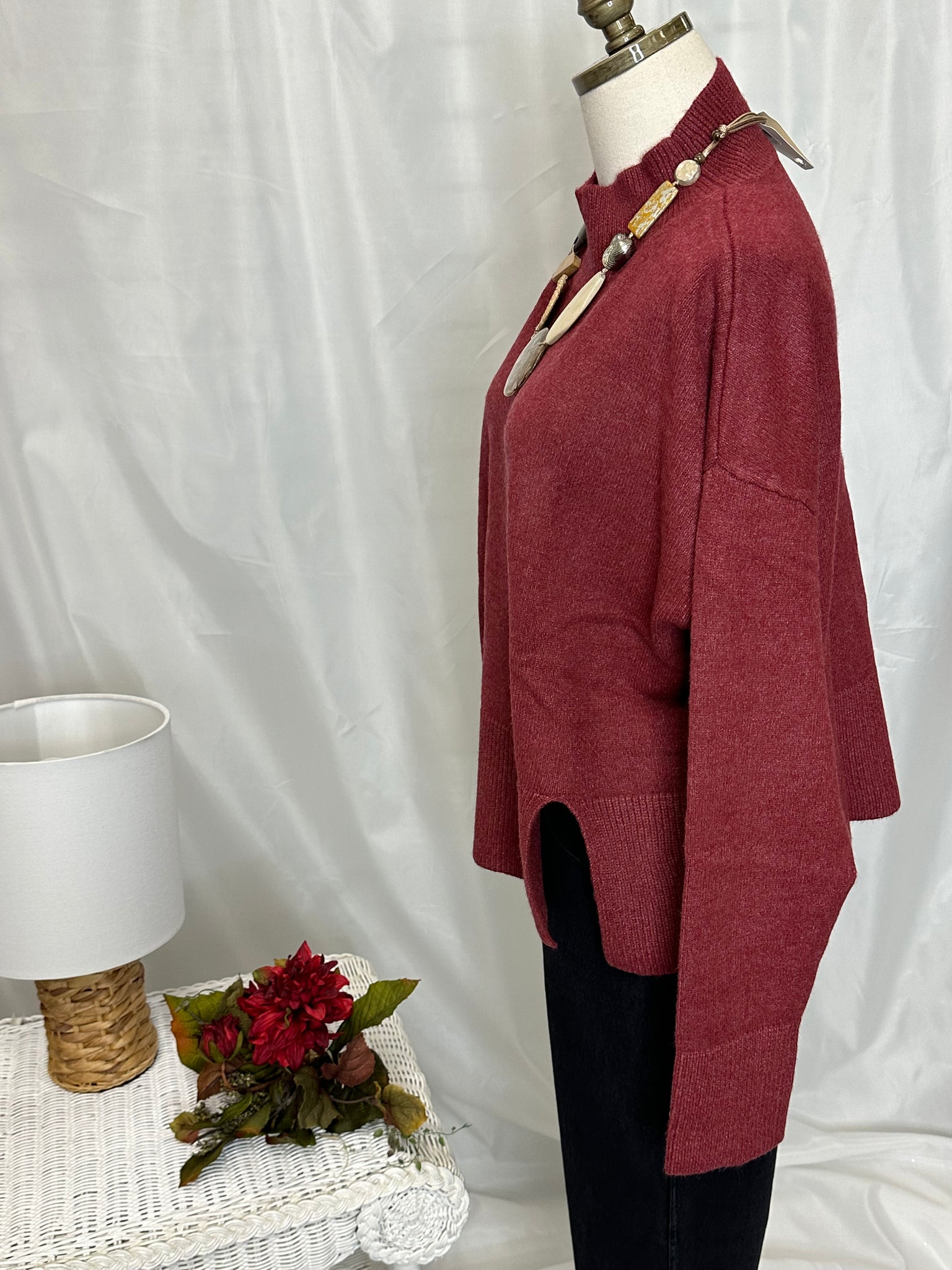The What A Memory Sweater combines a lightweight feel with cozy warmth, crafted from a blend of 54% acrylic, 30% polyester, and 16% nylon for durability and softness. Its long sleeves and mock neck offer elegant coverage, while the subtle split at the hemline adds a contemporary detail for ease of movement and style. Ideal for layering, this sweater delivers a refined silhouette suitable for both casual and polished looks.
