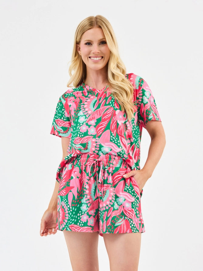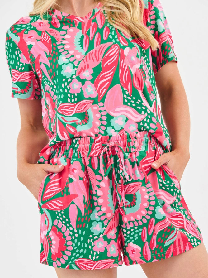 Step into comfort and style with the Short Set Alli Canopy Gleam in green from Mary Square. This women's lounge set is designed for those who appreciate the joy in the smallest things, like a comfortable outfit for a day at home. Embrace life's little imperfections and feel free to express yourself with this lounge set, perfect for every season of your life. Whether you're enjoying a lazy weekend, this set promises a blend of comfort and style.