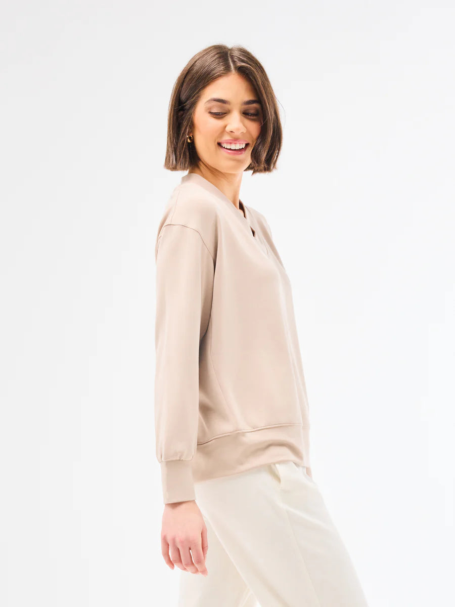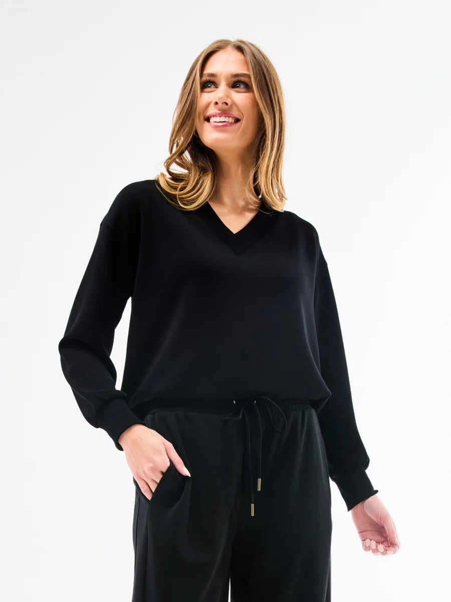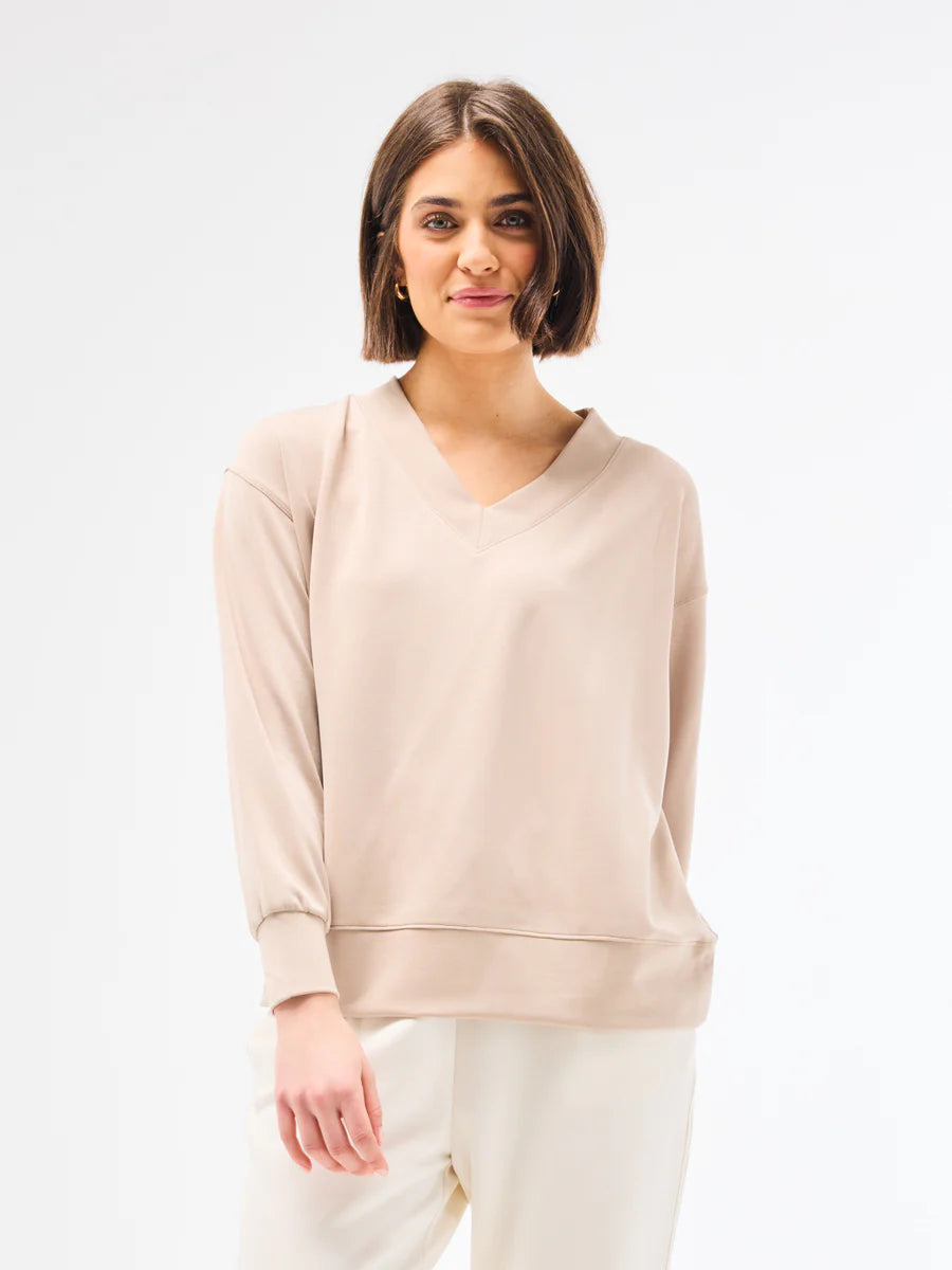Experience comfort and style with our Hazel Top. Made from a blend of 50% modal, 44% polyester, and 6% spandex, this long sleeve V-neck top is perfect for any occasion. Pair it with our matching Cora pants for a complete, put-together look.