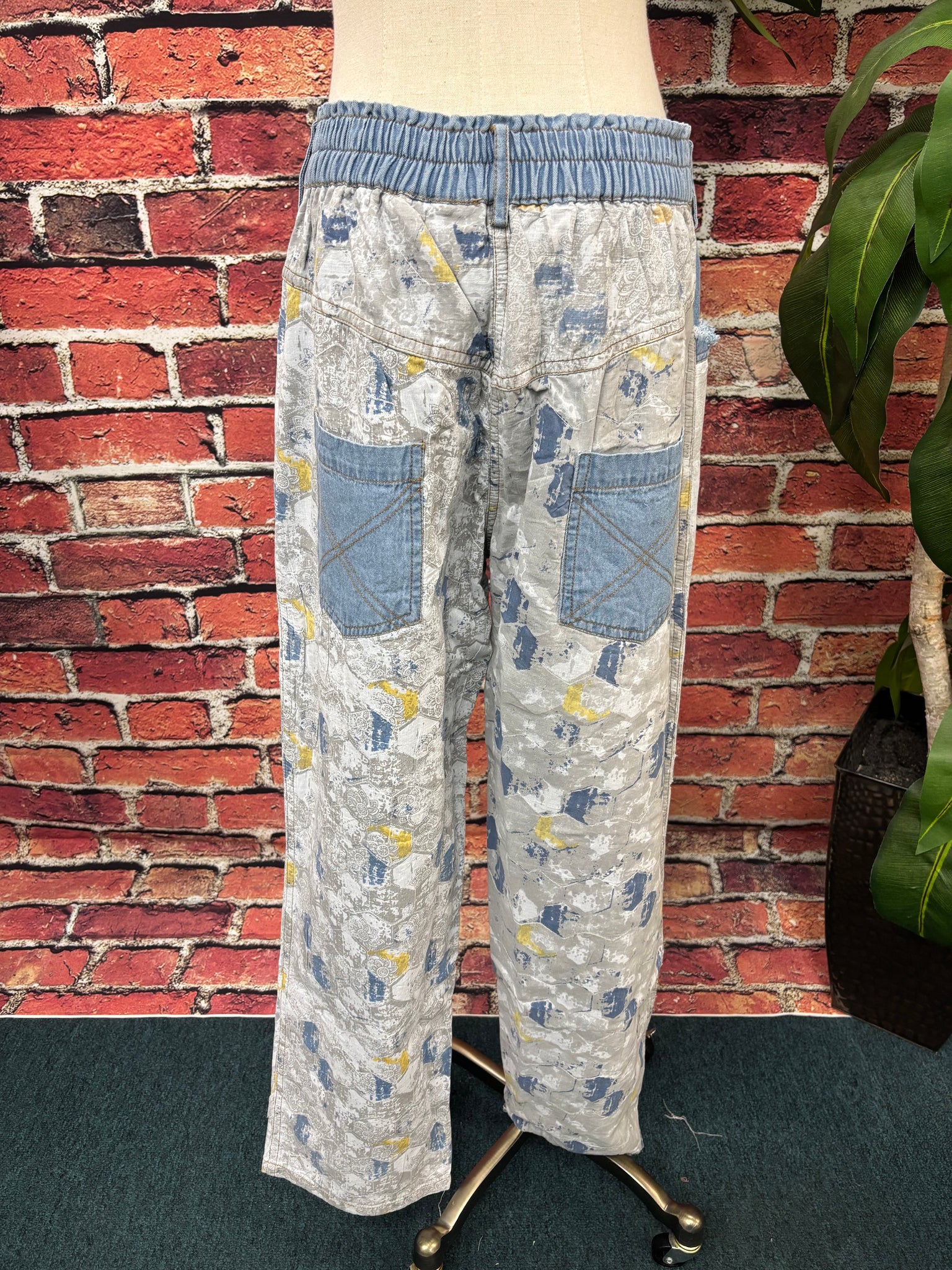 These one-of-a-kind honeycomb pants are such a statement piece! Featuring a soft denim base with beautifully layered lace and honeycomb-inspired detailing, they bring the perfect mix of edgy and feminine. The high-waisted fit with unique button accents adds a flattering touch, while the relaxed leg keeps them comfortable and easy to style.
