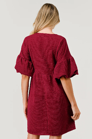 We are in love with our new trumpet sleeve, v-neck, babydoll dress. This style is in a beautiful satin finish Belize stretchy fabric. Perfect for holiday parties, weddings, church, and work. Made in USA 95% poly 5% spandex