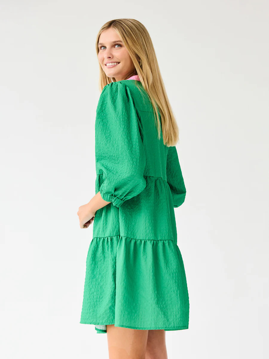 The Cooper Dress offers an effortless mix of sophistication and comfort. With a flattering V-neckline and 3/4 length sleeves featuring wide elastic cuffs, it brings an elevated yet relaxed feel to your look. The tiered skirt provides graceful movement, making it ideal for any occasion.