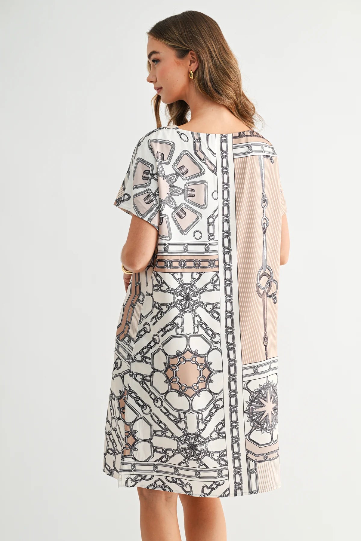 The Julissa Dress is a relaxed nautical printed shift dress with a chic, polished vibe. Designed with a classic round neckline, short sleeves, and an easy straight fit for all-day comfort. Perfect for brunch, daytime events, work-to-dinner styling, or casual gatherings when you want an effortless yet elevated look.