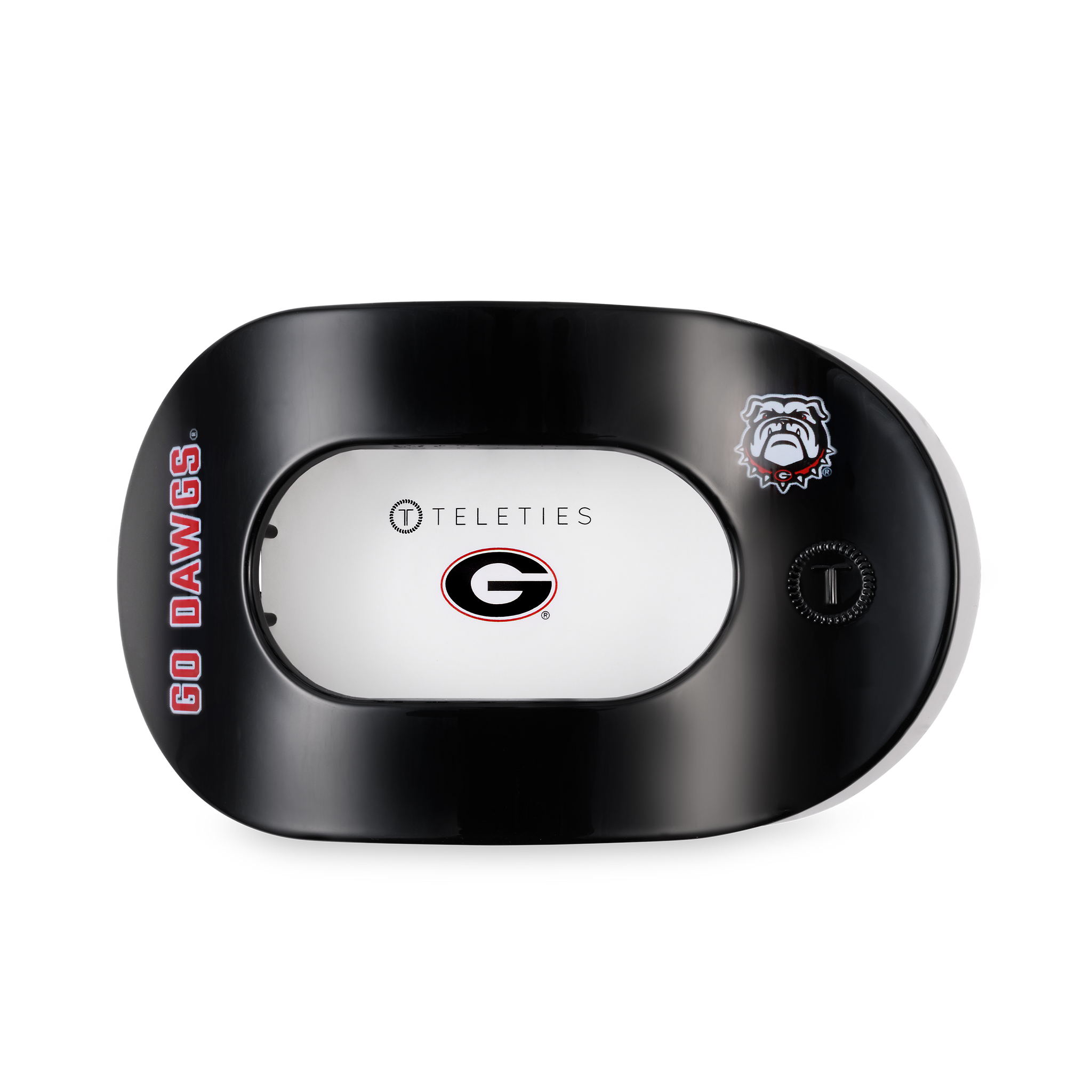 Lay flat and relax with the new TELETIES University of Georgia, Go Dawgs! Large Flat Round Hair Clip in Black and Red. This hair clip is designed to allow you to lay back flat, do yoga, or sit comfortably in a seat with a headrest, and it is made with the same material that is nearly unbreakable. Shop your favorite University of Georgia hair accessories now! Go Dawgs!