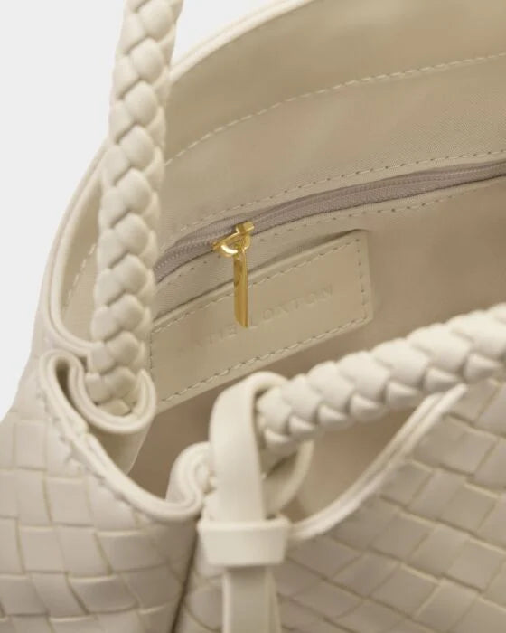 Showcasing a beautifully woven texture design, our Nova Top Handle Bag in Oyster adds texture and dimension to any look. Considered details include braided top handles, a signature branded bag charm, and a concealed magnetic closure, making it an effortlessly stylish grab-and-go piece.