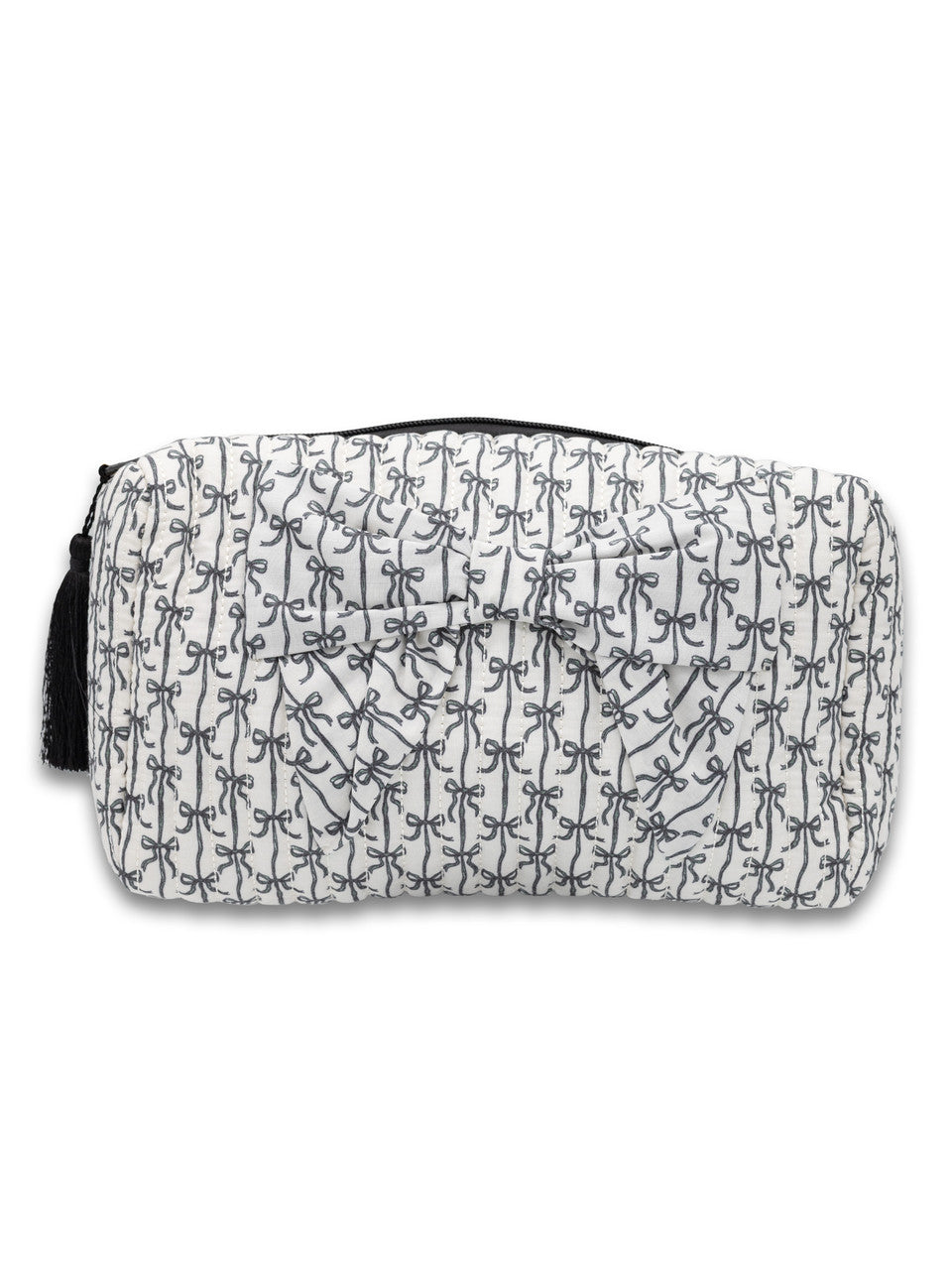The Quilted Cosmo Bag features a zip closure, ruffle detailing, a fully lined interior, interior pocket, tassel zipper pull, and the Simply Southern logo label. Made of 100% polyester.