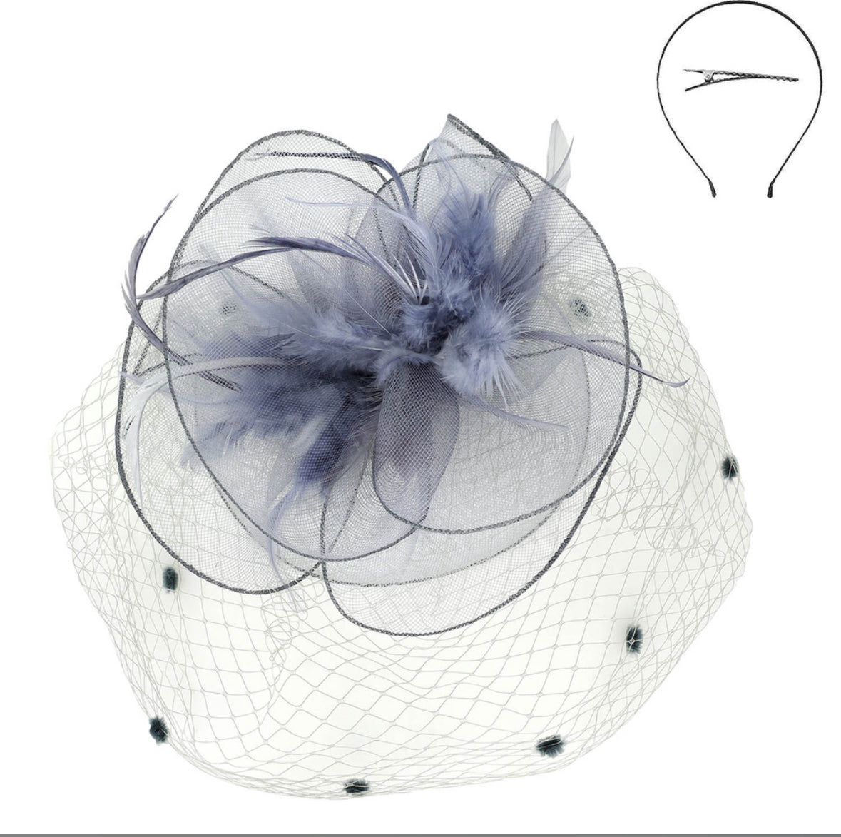 FEATHER MESH NET FASCINATOR PARTY HEADPIECE WITH HEADBAND AND CLIP