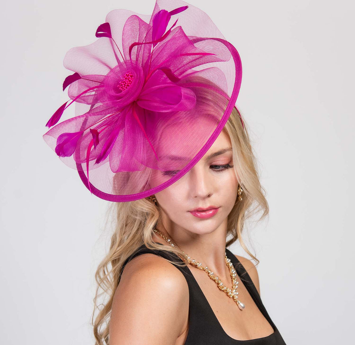 Floral Organza Mesh Ribbon Feathered Fascinator
