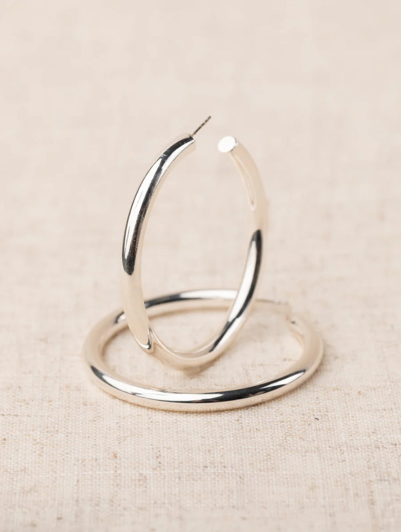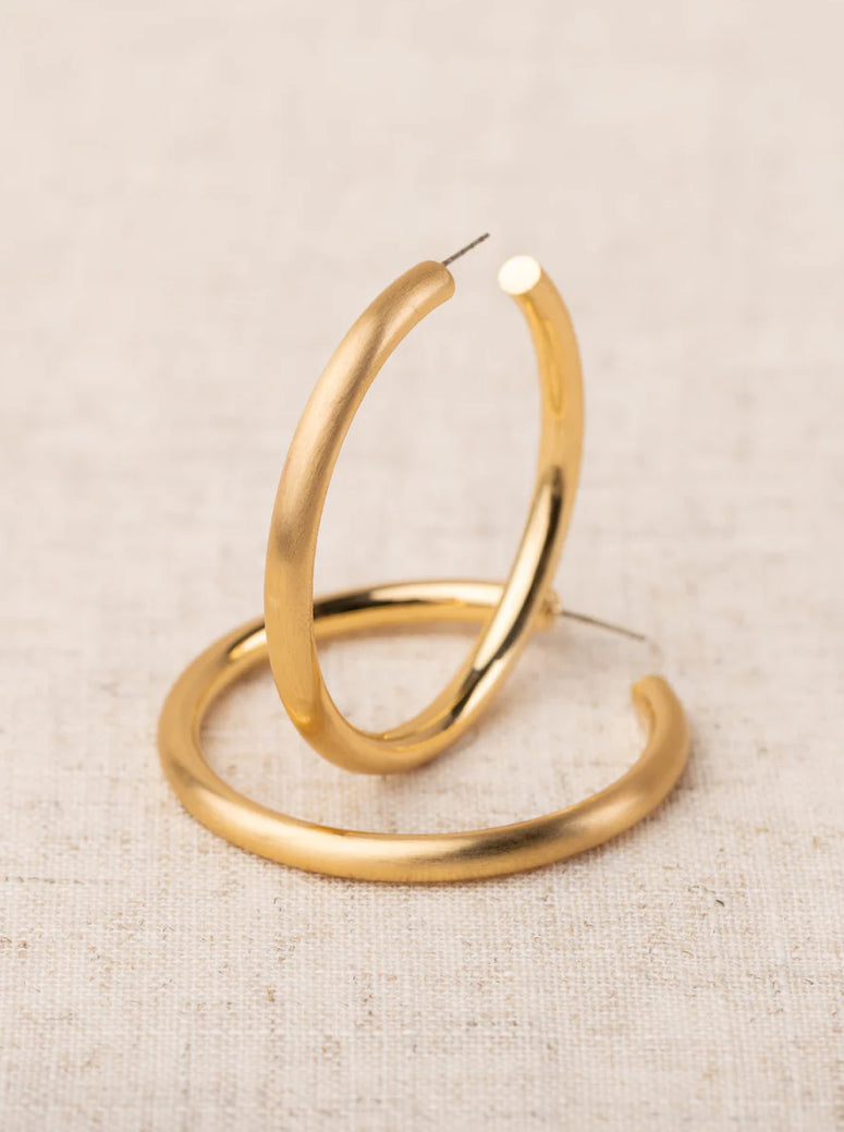 Introducing the Stella Earrings, the newest (and biggest) addition to our everyday hoop collection. Available in gold and silver and brushed or shiny finish.