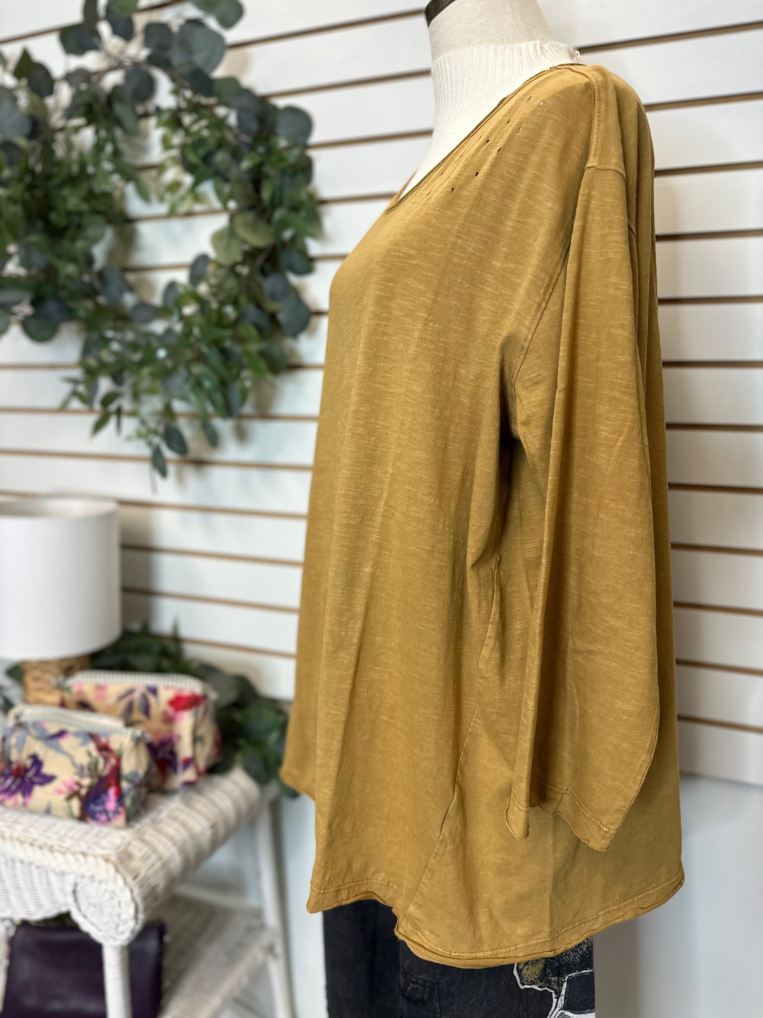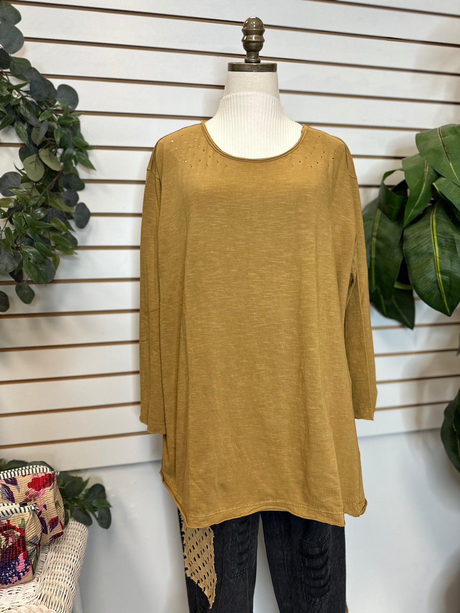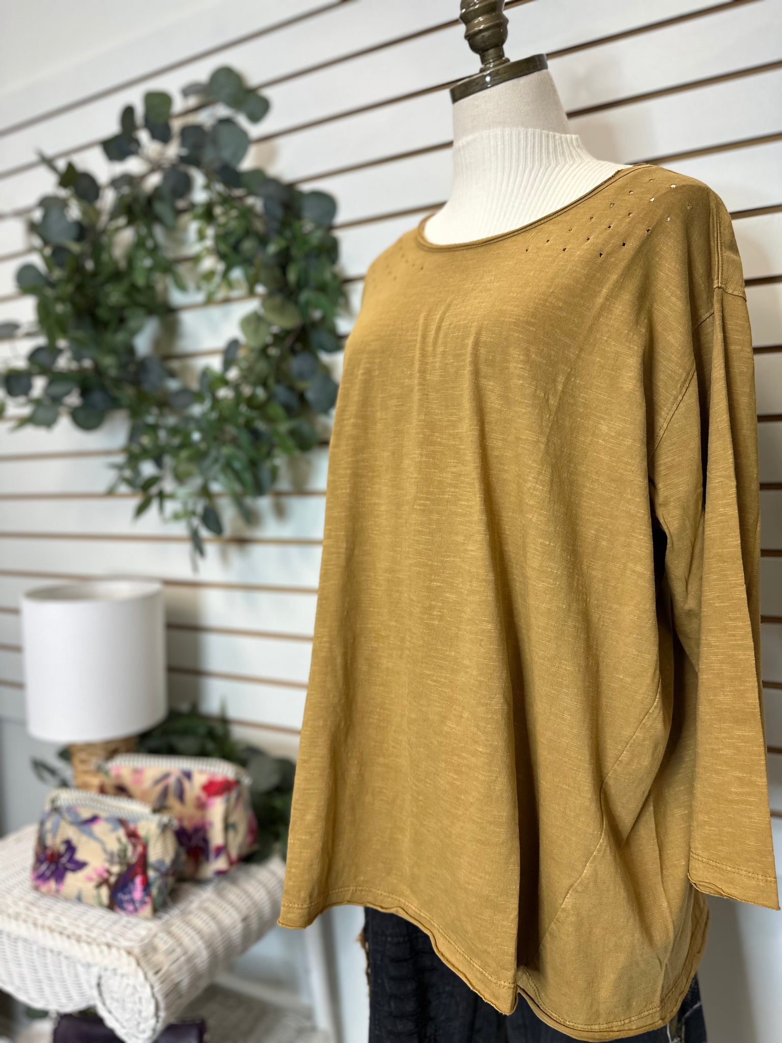 The Let's Ride Top is crafted from 100% cotton, offering a comfortable, breathable fit that complements any boho wardrobe. Its round neck and full sleeves feature subtle distressing with raw edges, adding effortless texture and a laid-back vibe. Perfectly suited to pair with bohemian styles like Paper Lace, Jaded Gypsy Pol, or Davi & Dani, this top blends classic design with relaxed detailing for a versatile, stylish look.
