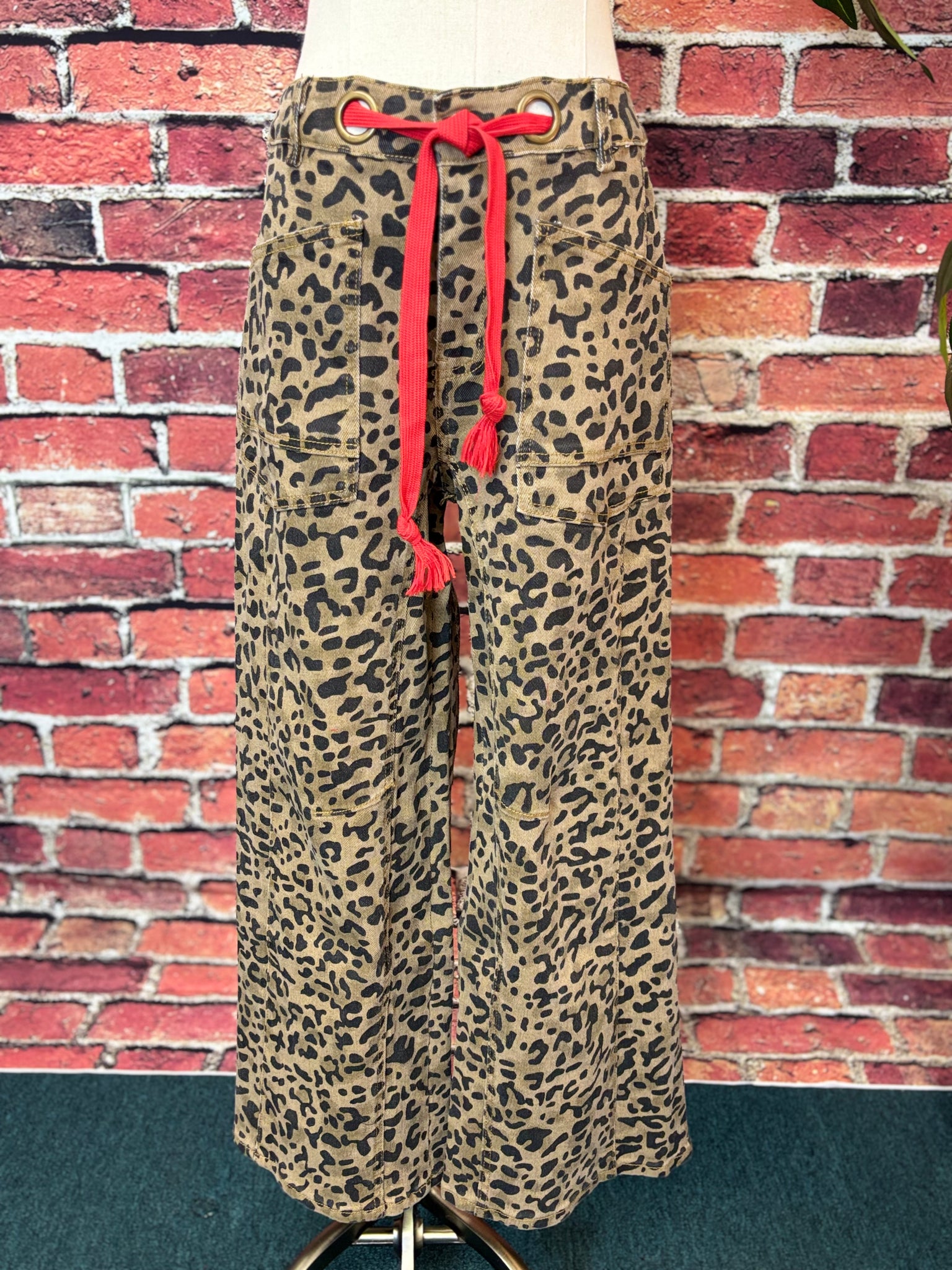 The standout red belt threaded through gold grommet details adds a fun pop of color and makes styling effortless. Pair them with a graphic tee, cozy sweater, or your favorite boutique top for an instantly chic look.
