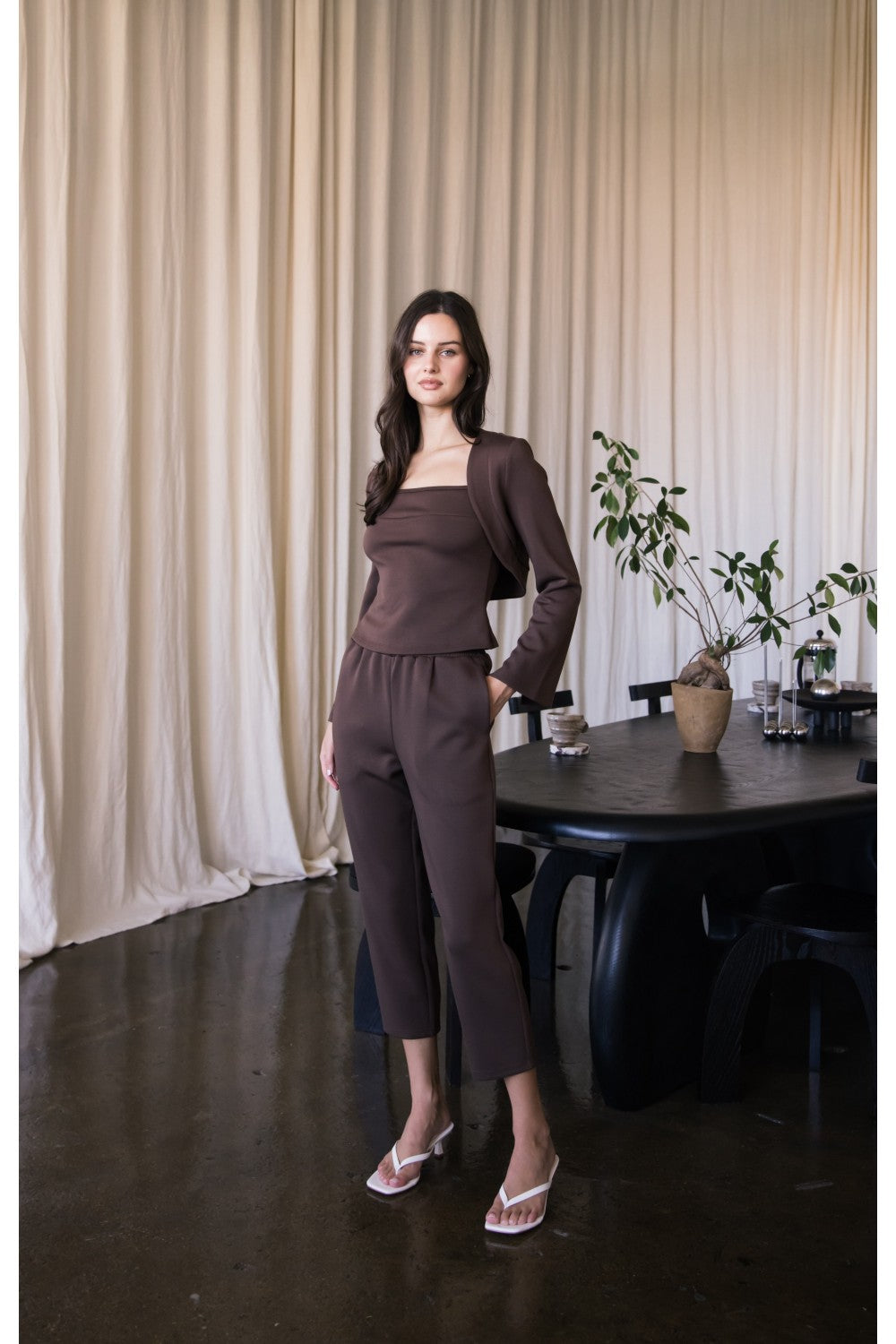 Effortlessly sleek and endlessly comfortable, this waistband ankle pants are a refined staple for any wardrobe. The wide waistband provides a secure yet flexible feel, while the ankle-length cut creates a streamlined silhouette.
