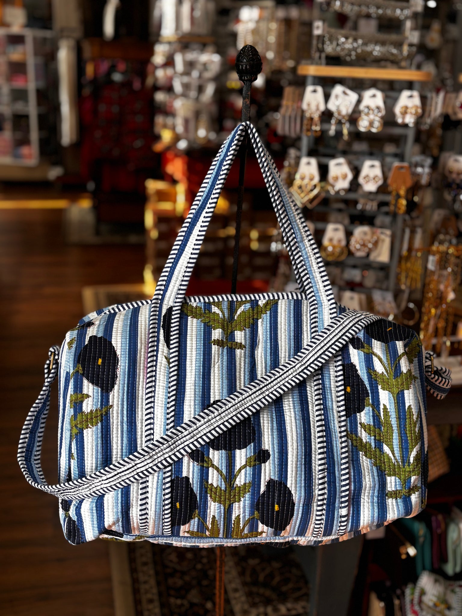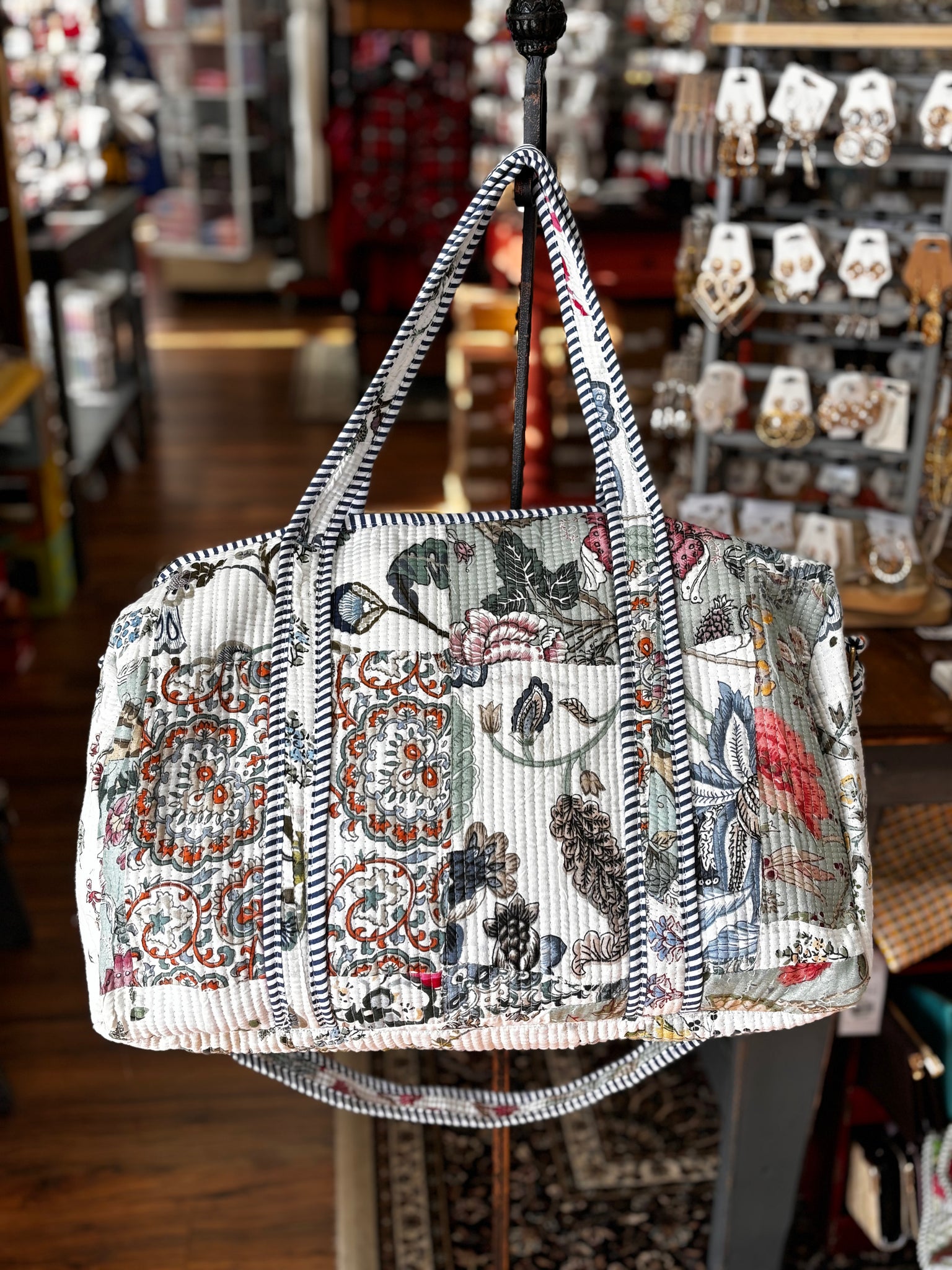 Introducing Safe Travels, the ultimate cloth tote for your travels. With its over-the-shoulder strap and handles, it's easy to carry and boasts convenient inside pockets. This must-have tote also features a zipper for added security. Measuring 18”x10”x12”, it's the perfect size for all your essentials. Travel with confidence and style with Safe Travels.