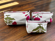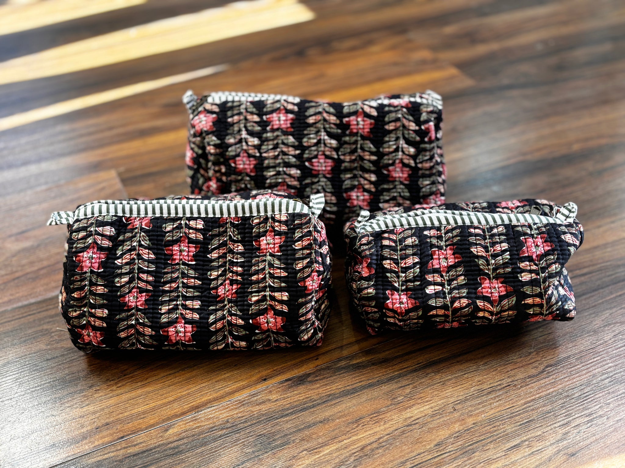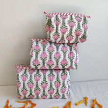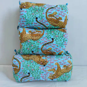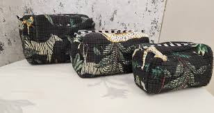The Travel Buddy Tote is a set of 3 eco-friendly cotton bags, handcrafted in India. Each bag features a unique jungle print design, offering a sustainable and stylish solution for carrying makeup, toiletries, and more. With this set, you'll have everything you need for organized and environmentally conscious travel.