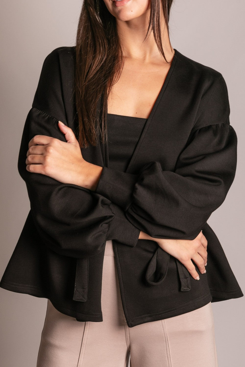 | This effortlessly chic wrap cardigan is your go-to layer for everyday ease. It features a relaxed fit with a self-tie waist, creating a flattering silhouette that can be styled open or wrapped. Details: - 48% Modal, 48% Polyester, 4% Spandex - V-neck - Front tie detail - Long sleeves |