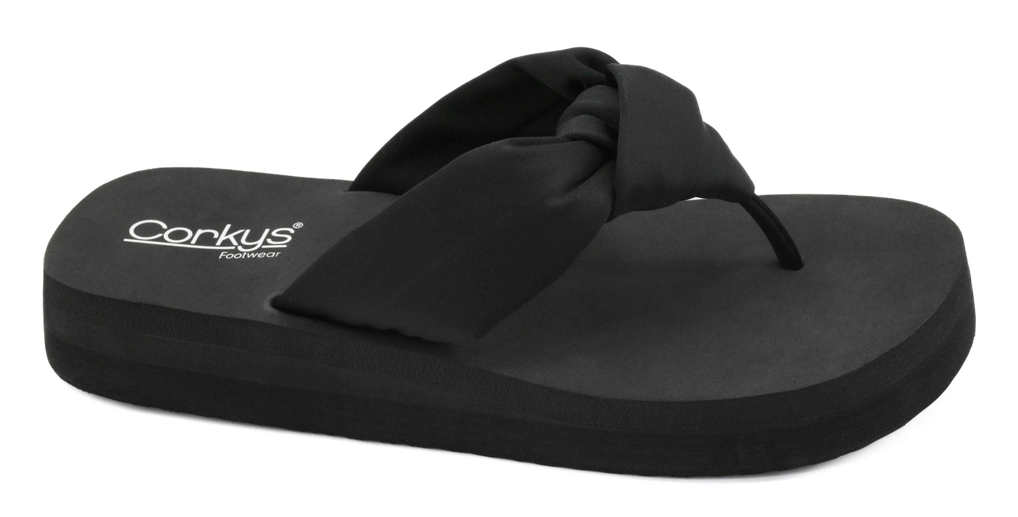 Effortless, elevated, and oh-so-comfortable — this Corkys platform sandal is your go-to for sunny days and vacation vibes. Designed with a cushioned black platform sole and a soft knotted thong strap, it blends statement style with all-day wearability.