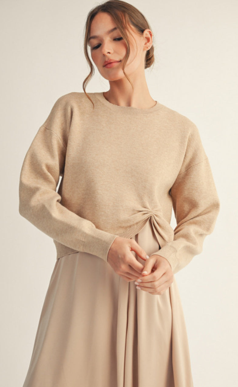 Experience style and comfort with our Night Of My Dreams Sweater. Long sleeves and soft texture provide ultimate warmth, while the knot accent adds a trendy touch. The drop shoulder design adds a relaxed and chic look. Upgrade your wardrobe with this must-have staple.