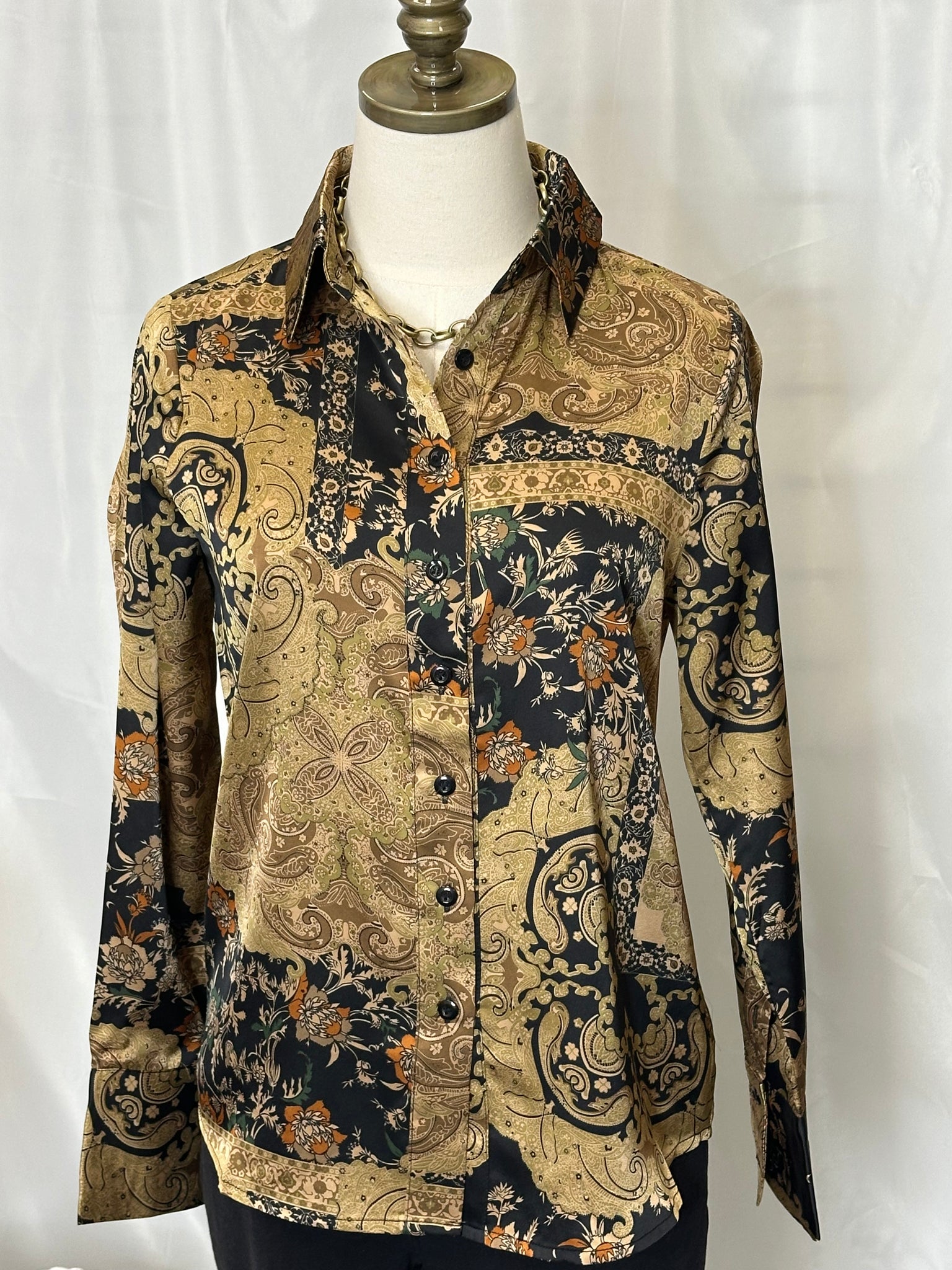 The Cleef Blouse combines sophistication with versatility through its multi-print design and button-front closure. Crafted from 100% polyester, it ensures lightweight comfort and easy care. Its long sleeves feature a refined three-button cuff detail, adding subtle elegance suitable for professional or casual settings. This blouse offers a polished look with practical wearability for the modern wardrobe. Pair back with "Ring Gilet Vest" or "Ring Trouser" for a complete look.
