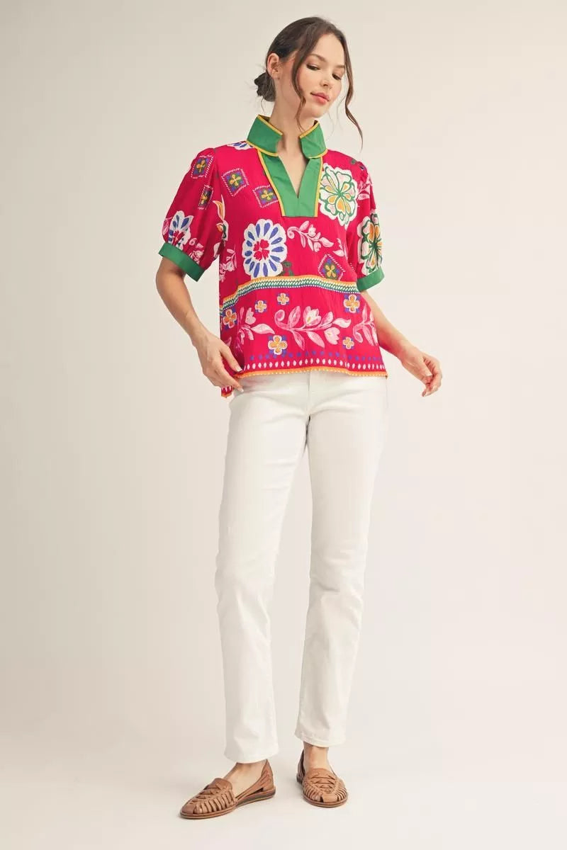 The Don't Forget Me Top captures effortless bohemian style with its delicate floral print and romantic silhouette. Featuring puffed sleeves that frame the shoulders and a structured standing neckline, this piece balances vintage-inspired details with contemporary ease. The relaxed fit drapes beautifully without clinging, making it versatile enough for casual outings or layered styling. Perfect for those seeking understated elegance with a touch of whimsy.