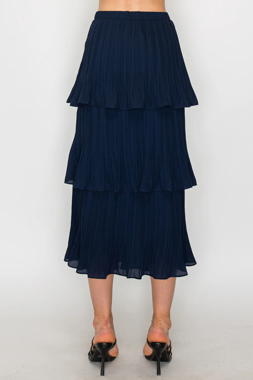 Made with high quality woven ruffled chiffon. Detailed pleated crinkle ruffles. Midi skirt. Elastic waist. Vibrant and elegant. Stylish and comfort.
