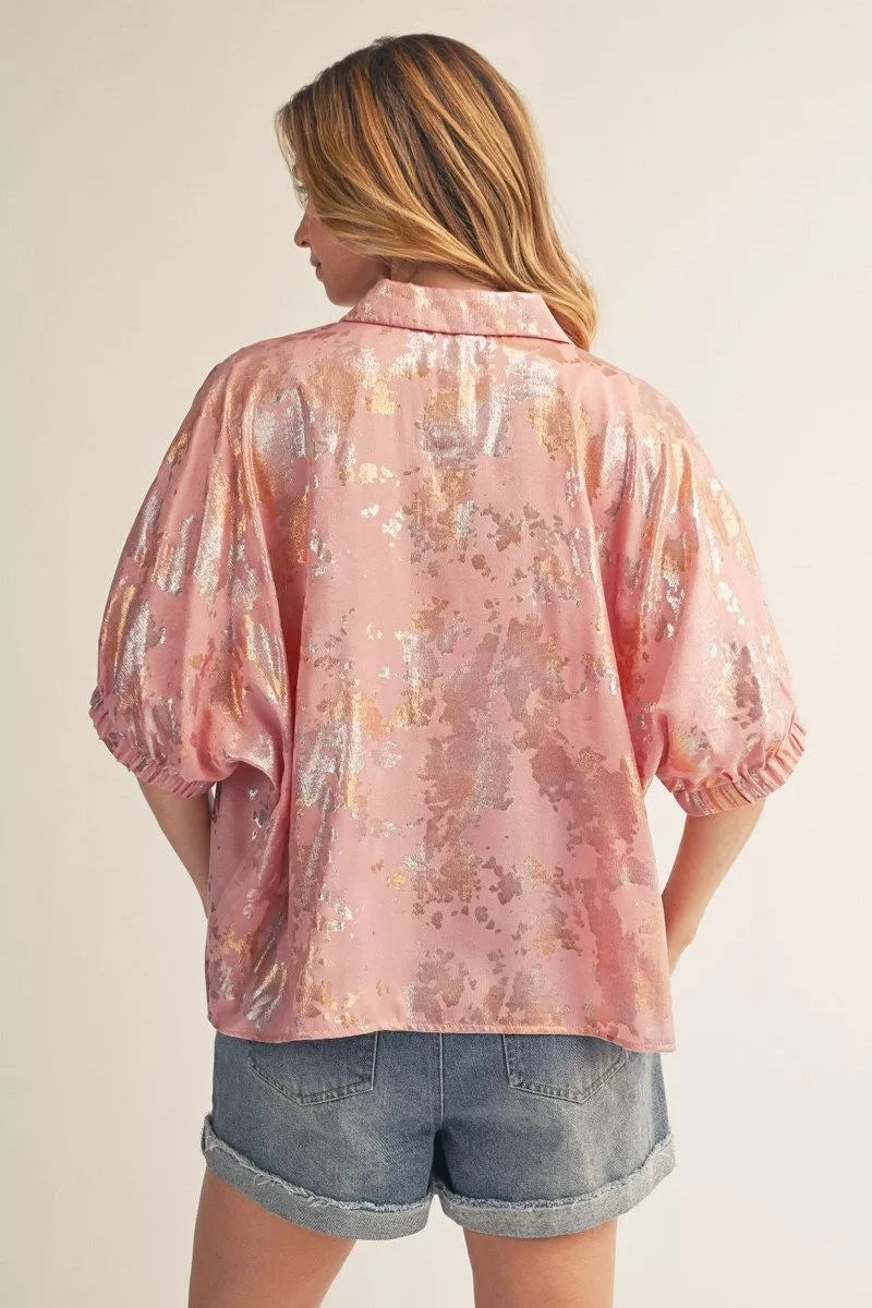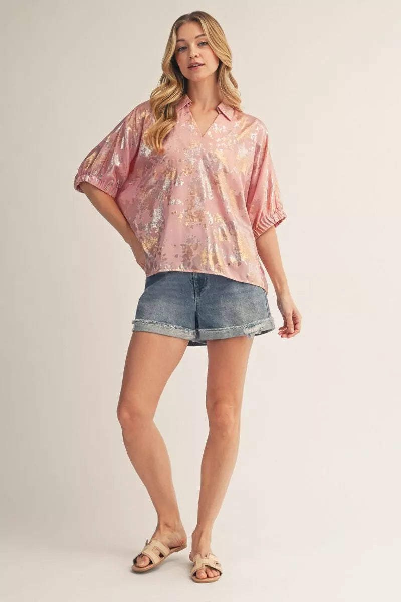Drop shoulder dolman sleeves metallic top.