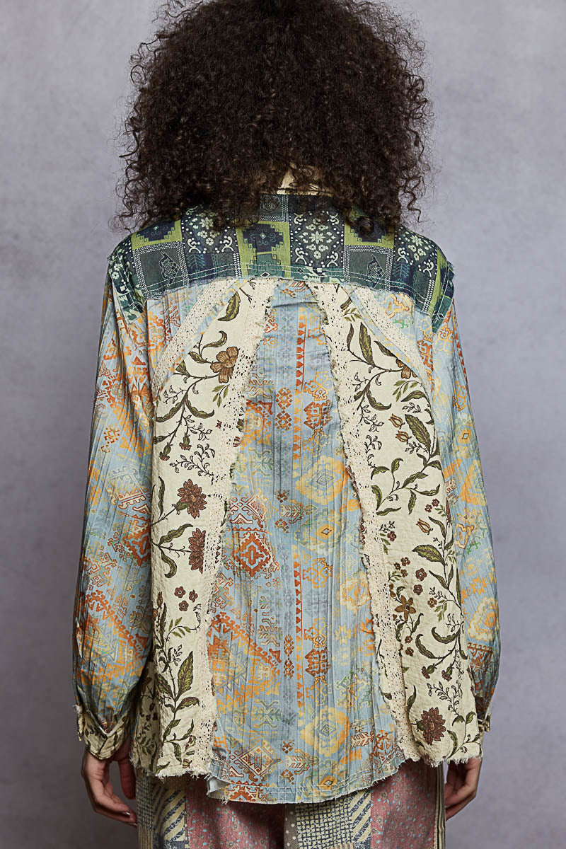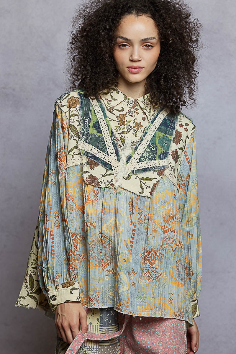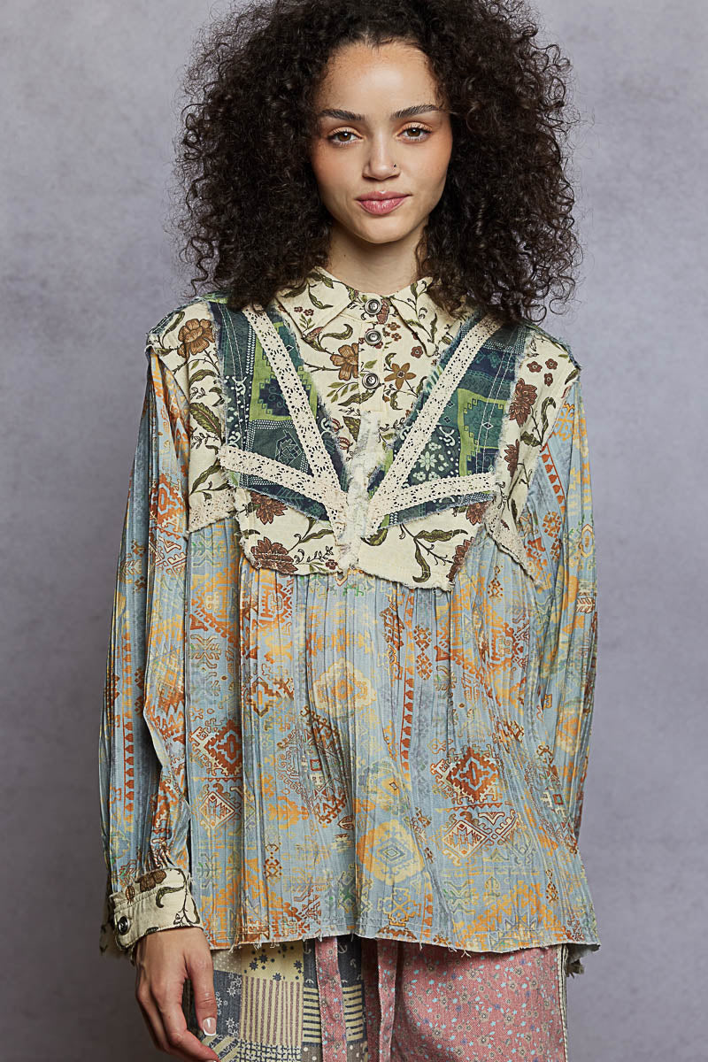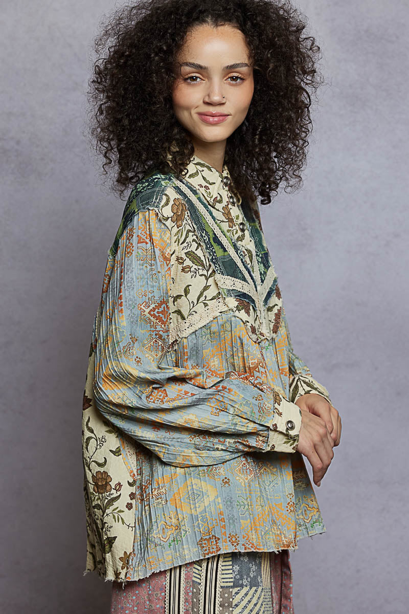 Designed in balloon sleeve relaxed fit half button top in printed woven.