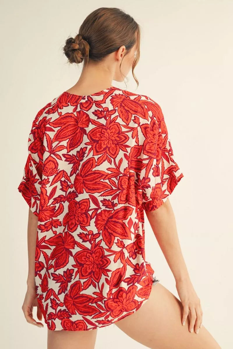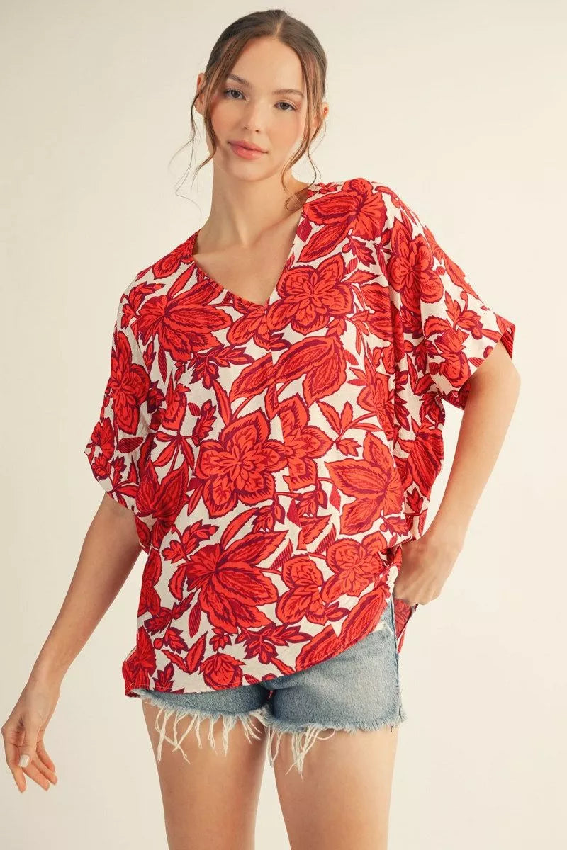 Effortlessly chic, this drop shoulder v-neck top combines comfort with contemporary style. Crafted from a luxurious rayon and nylon blend, the fabric drapes beautifully while maintaining its shape. The relaxed, loose fit flatters all silhouettes, while the delicate floral print adds visual interest. The dropped shoulders create a modern, off-duty aesthetic perfect for casual outings or layered styling. A versatile wardrobe essential that transitions seamlessly from day to evening.