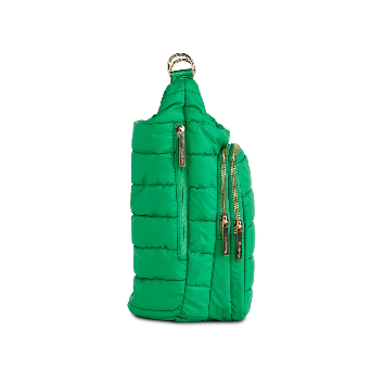 - Puffer Coat Fabric: Kelly Green w/ adjustable and interchangeable green and white woven strap