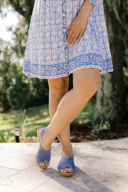 We are loving this faux-cork sole, which is why we put our most comfortable crisscross straps on it! Let this sandal take you from the farmers market to lunch with the girls!