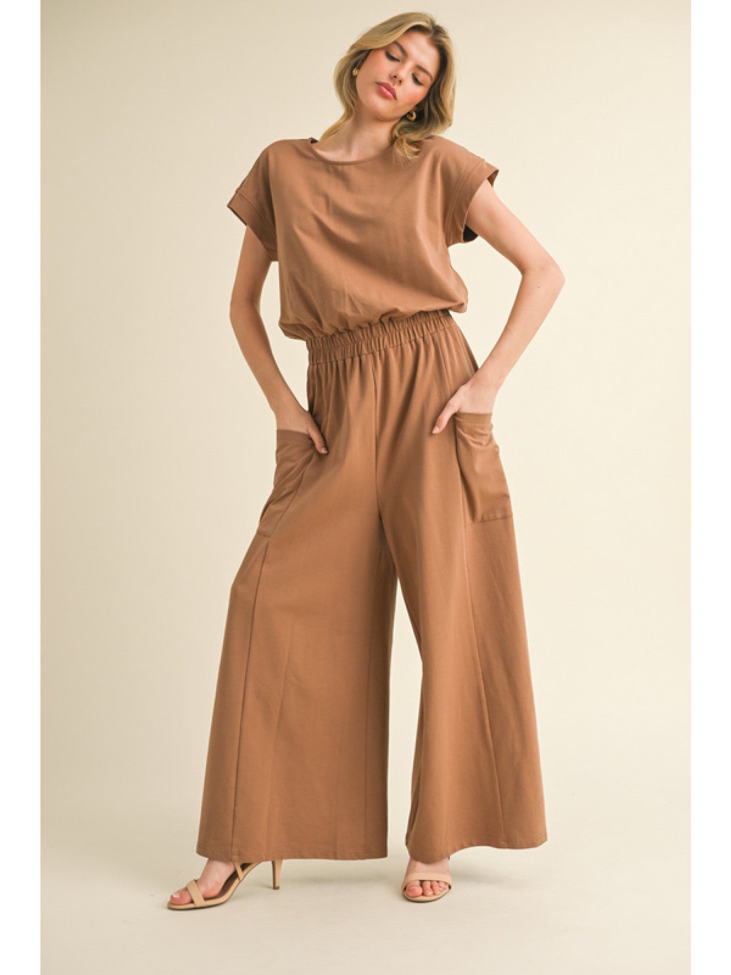 Upgrade your wardrobe with the Coming In Hot Jumpsuit. This jersey jumpsuit features a U-neck and back zipper for a sleek, modern look. The stretch-band waistline and 2 side pockets offer both style and functionality. With short kimono sleeves and wide legs, this non-sheer and lightweight jumpsuit is perfect for any occasion.