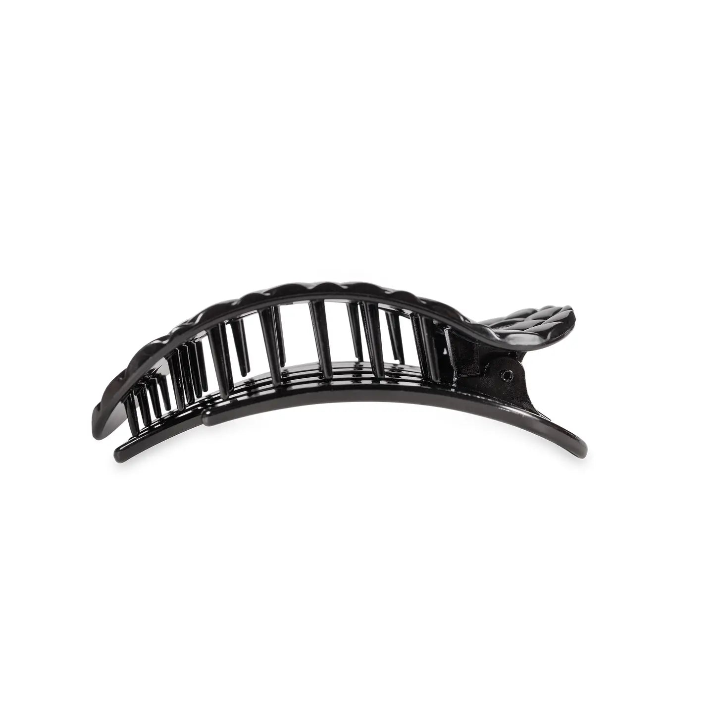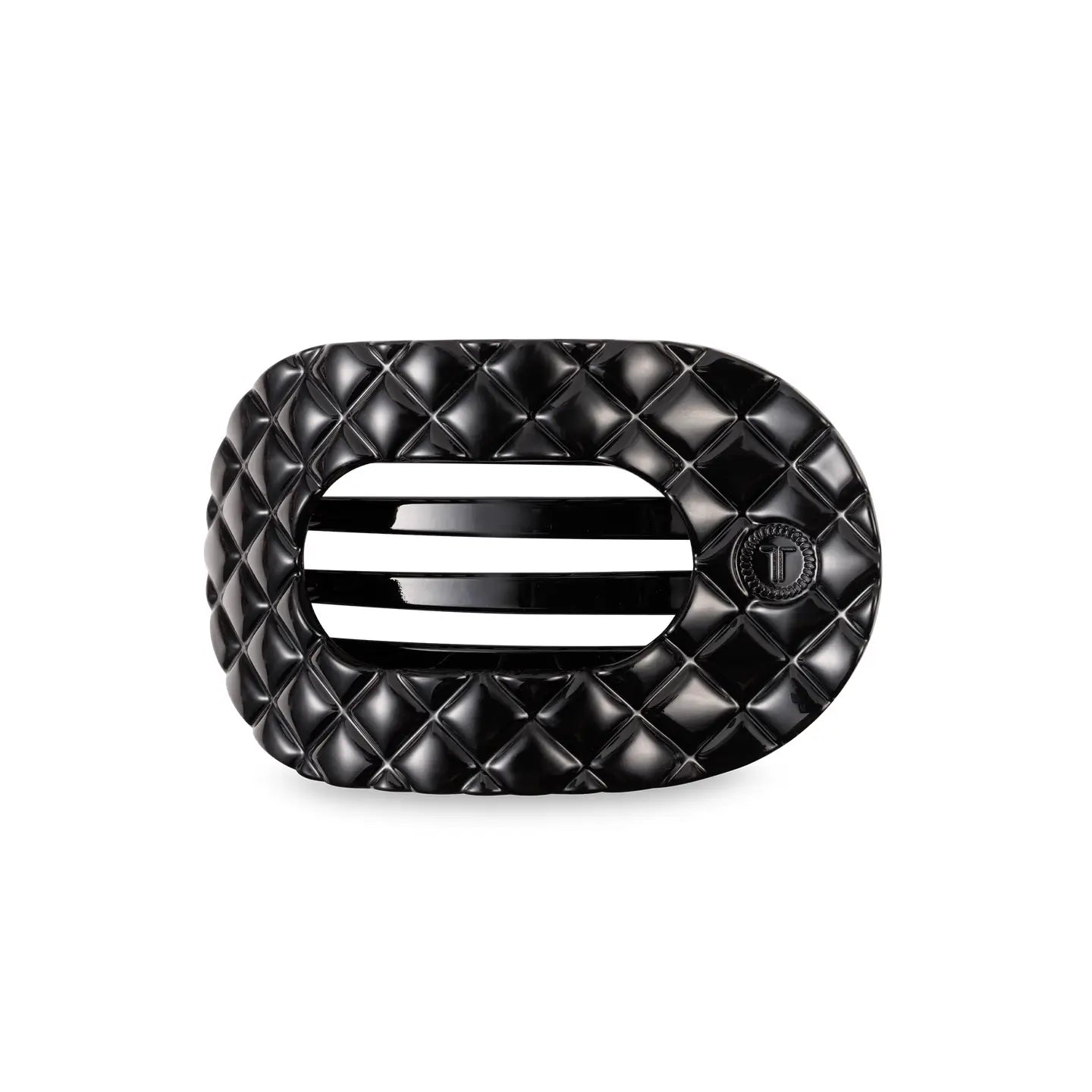 Lay flat and relax with the new TELETIES Jet Black Quilted Small Flat Round Hair Clip in Black. This hair clip is designed to allow you to lay back flat, do yoga, or sit comfortably in a seat with a headrest, and it is made with the same material that is nearly unbreakable.