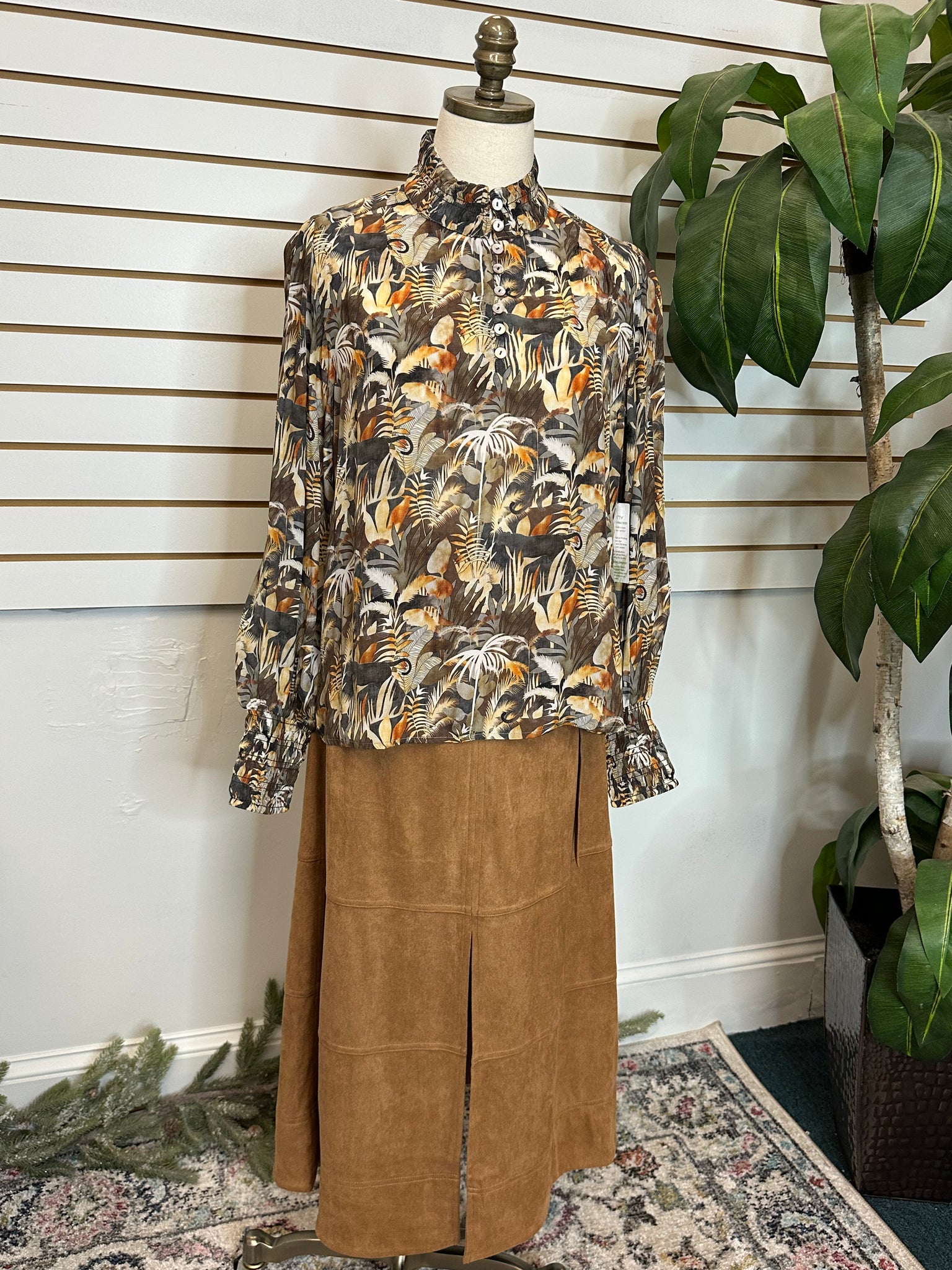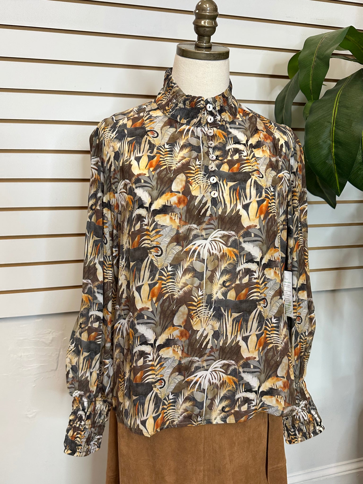 This puff sleeve blouse features unique ruched detailing, adding a touch of elegance to any outfit. The ruching adds texture and dimension to the blouse, creating a flattering silhouette. With its versatile design, this blouse is perfect for both formal occasions and everyday wear.