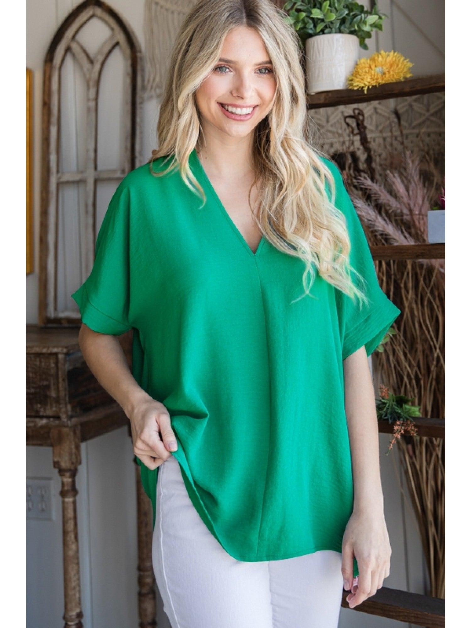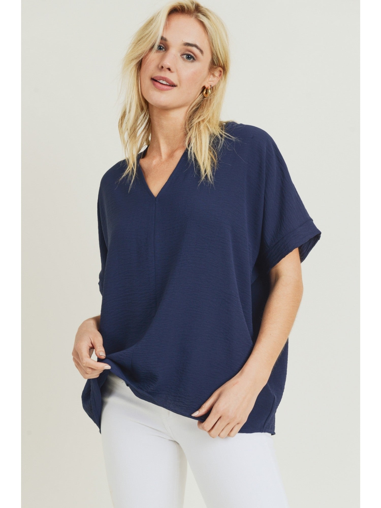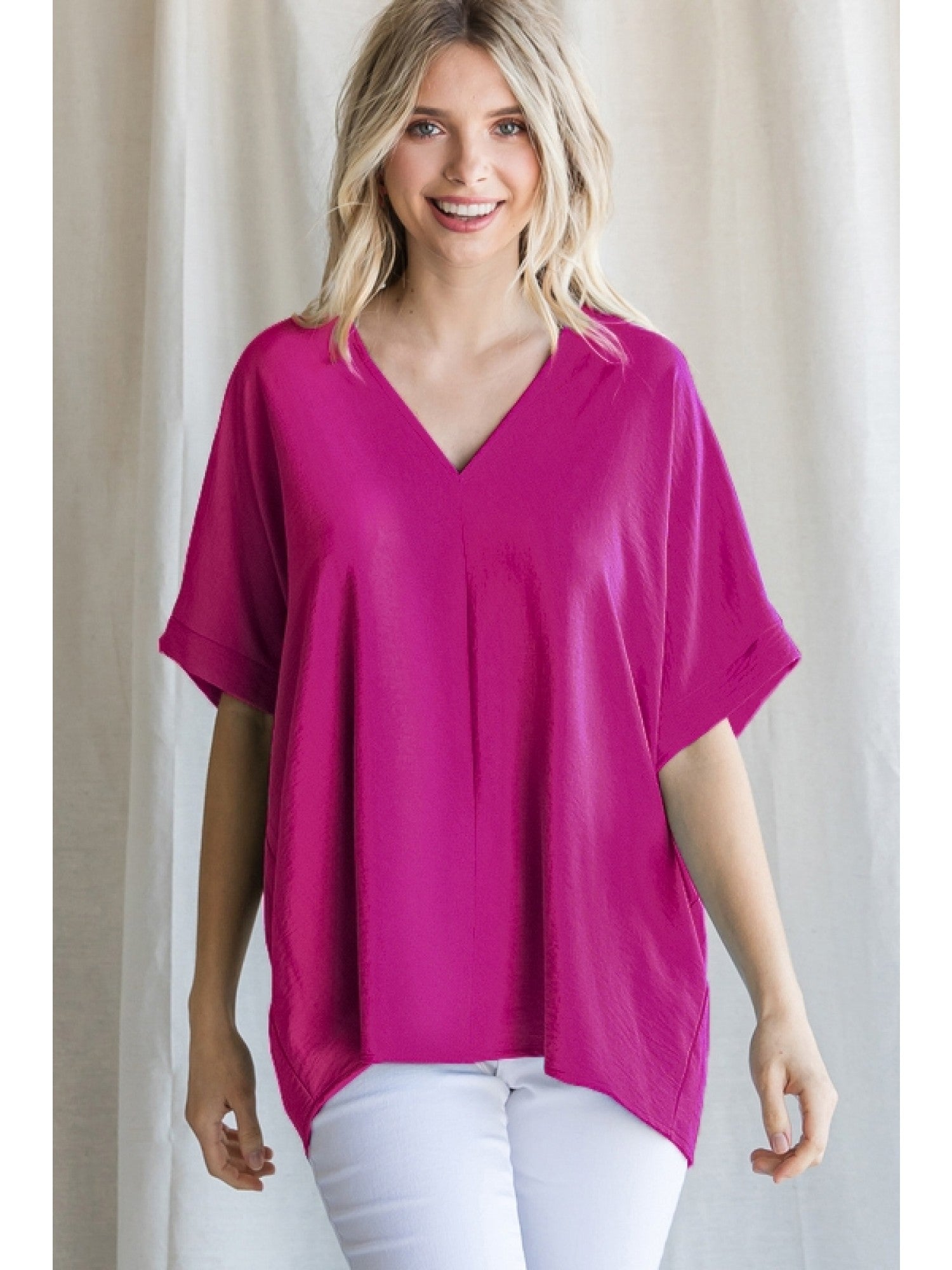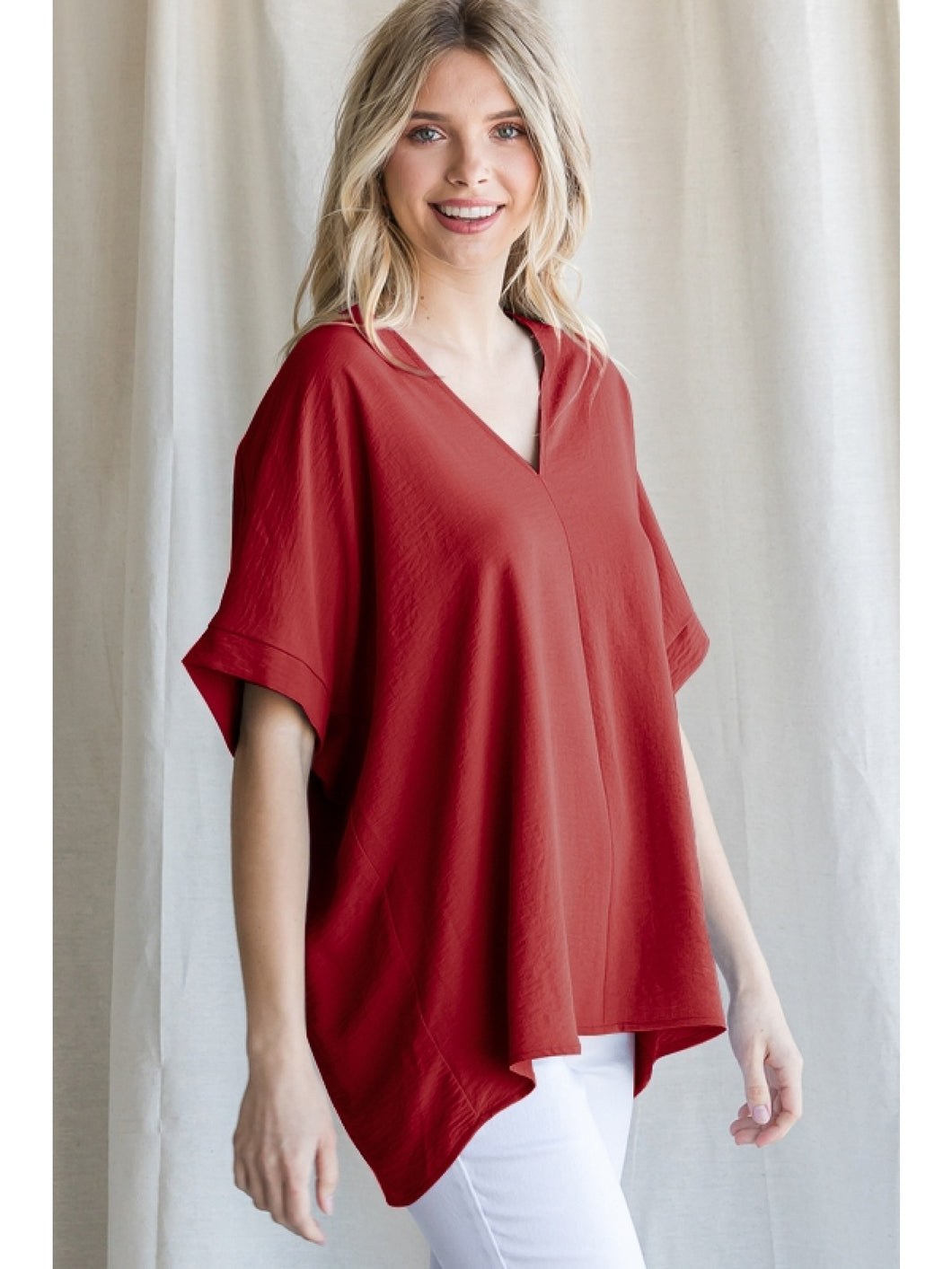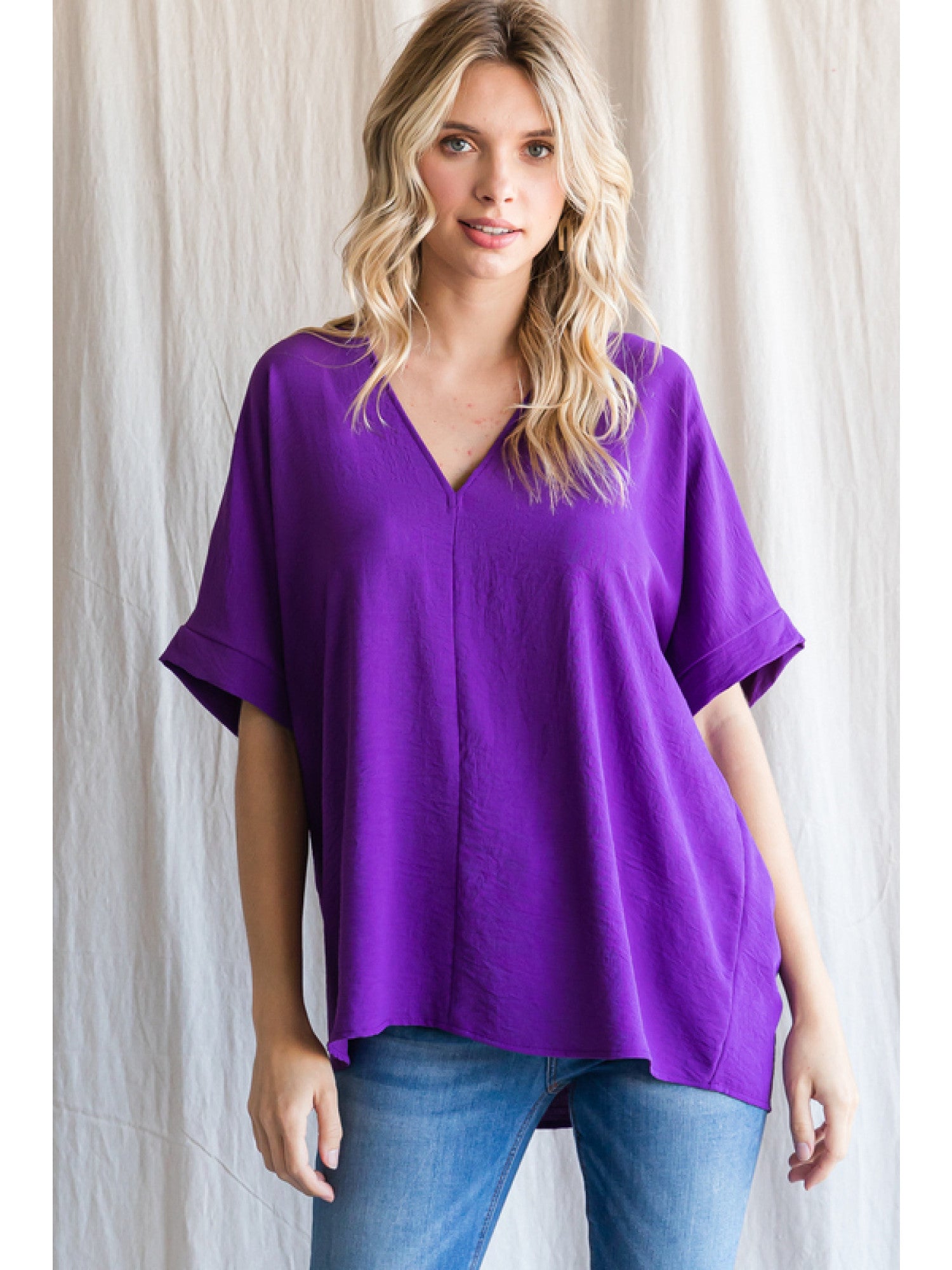 Expertly crafted with a solid, boxy design, the "It's Time Top" is as versatile as it is stylish. Boasting a V-neckline and short sleeves, it offers a flattering fit for any body type. Perfect for any occasion, it is made of a lightweight, non-sheer fabric for comfort and breathability. Upgrade your wardrobe with this must-have top. 100% Poly.