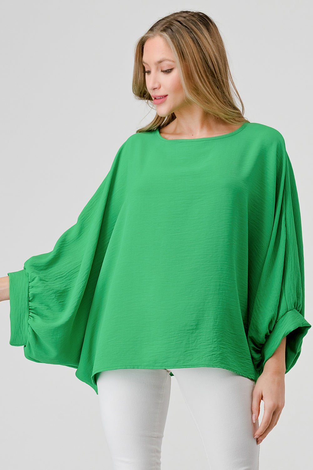 Oversized dolman sleeve top with cuff. Airflow fabric. Made in USA